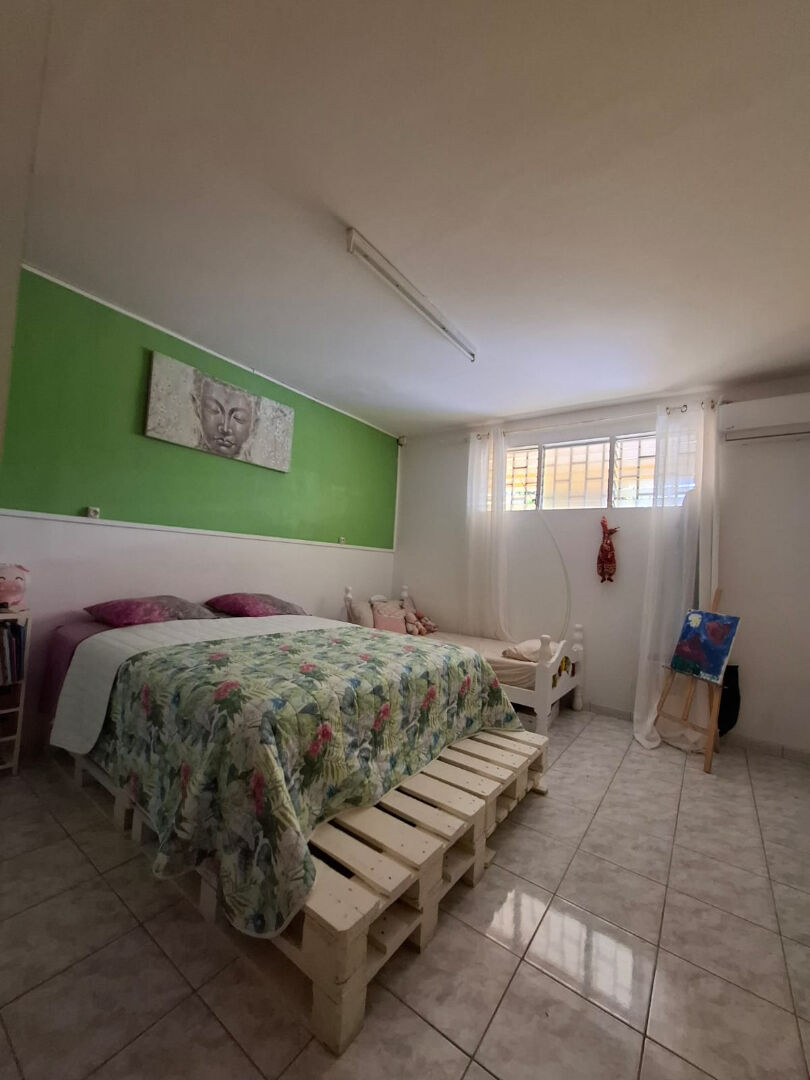 Elle s'articule autour d'un séjour lumineux, d'une cuisine colorée, de deux chambres, deux salles d'eau et d'une grande terrasse. En R-1, on trouve une grande chambre.