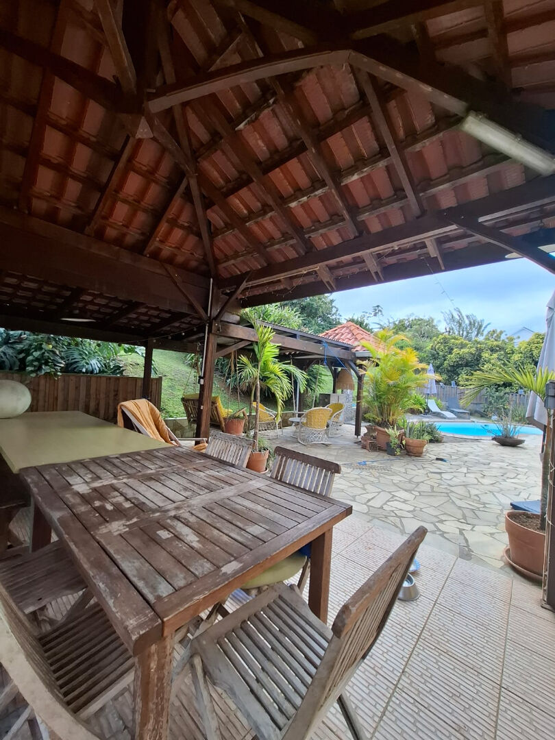 L'extérieur dévoile un jardin entretenu, deux kiosques, une magnifique piscine et une balancelle.