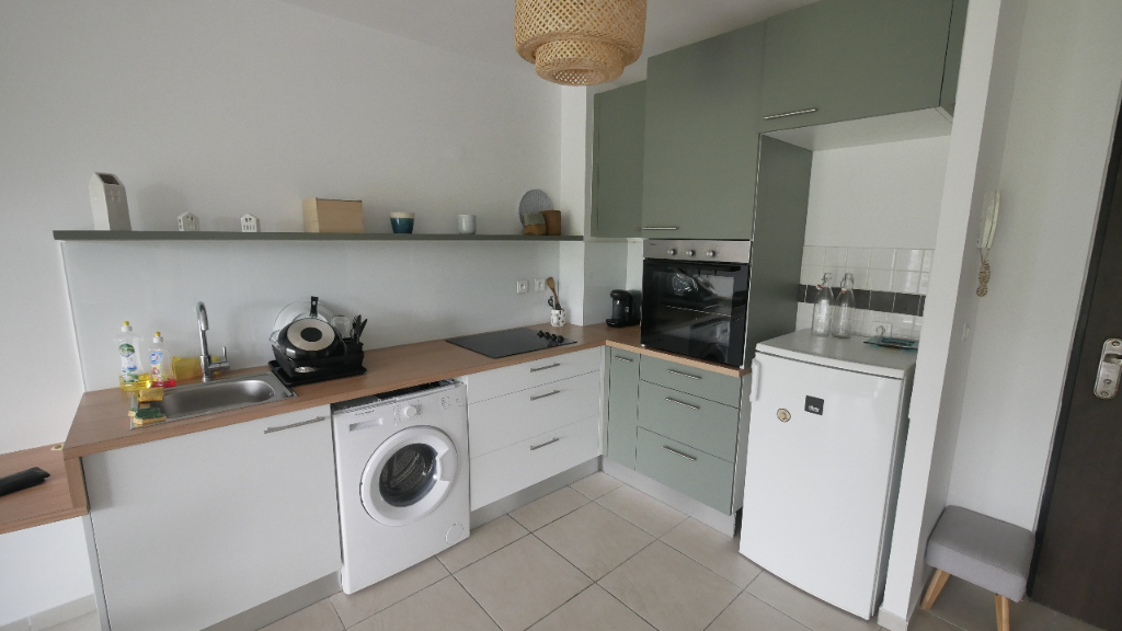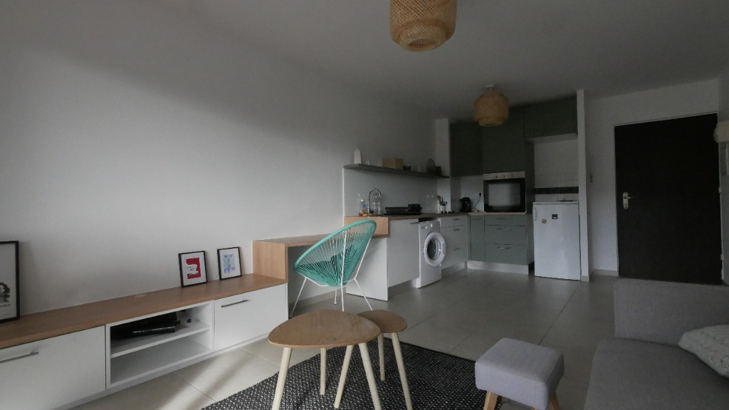 Bel appartement T2 meublé à proximité de toutes les commodités, situé dans une résidence sécurisée, comprenant un séjour, avec coin cuisine, une chambre, une salle d'eau avec wc, une varangue et une place de parking.