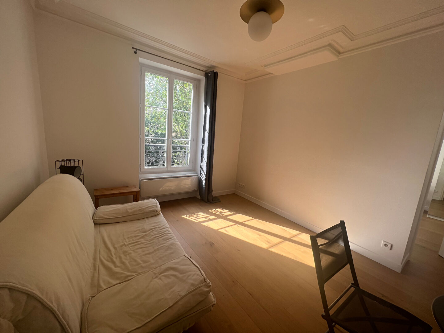 Nous vous proposons cet appartement de deux pièces loués meublé. Il se compose de sa pièce de vie, une chambre donnant sur le square Dormoy, une salle d'eau avec WC.