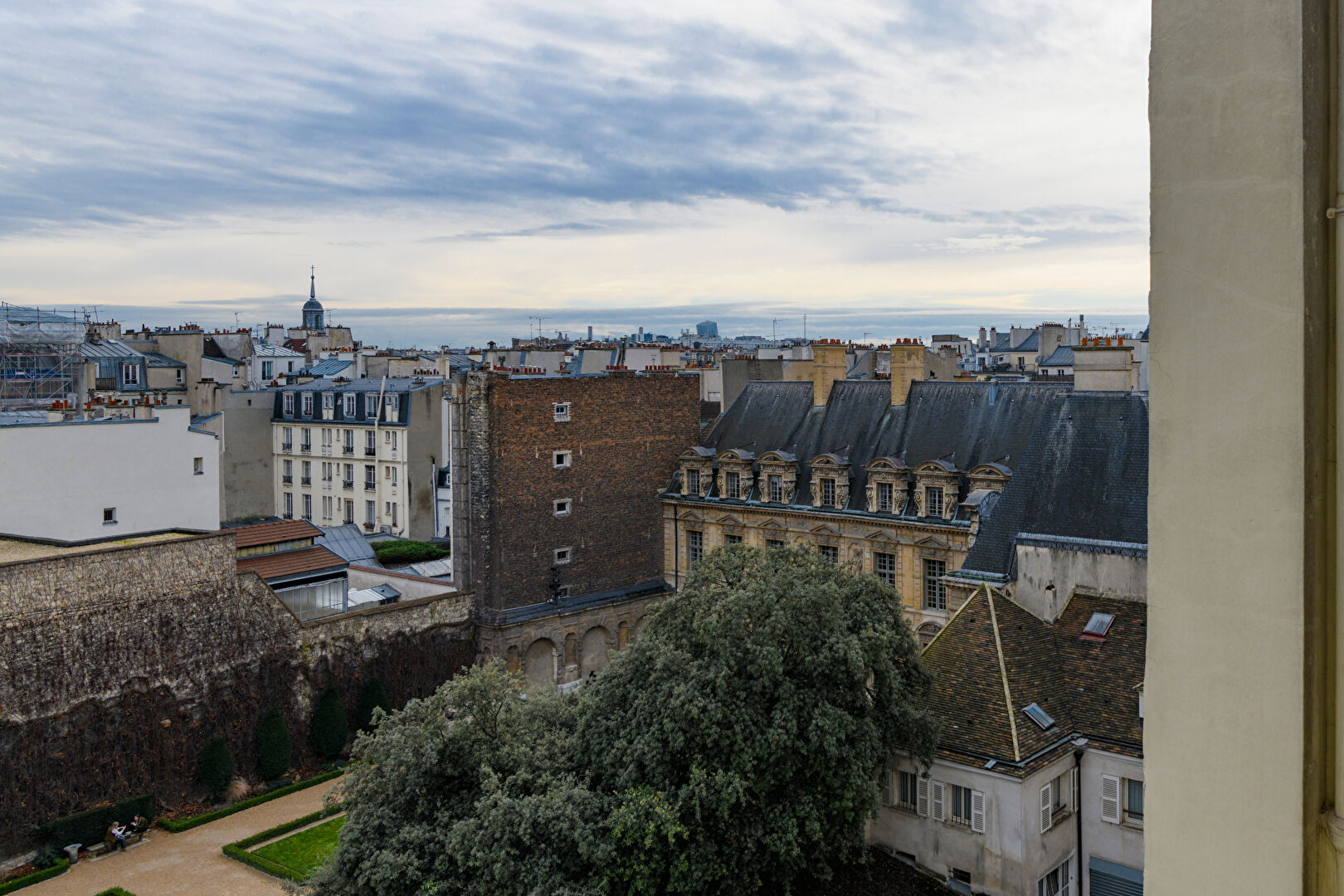 Ce deux-pièces se compose d'un séjour lumineux, d'une chambre au calme sur cour offrant une vue dégagée sur l'Hôtel de Sully et la colonne de Juillet, d'une cuisine indépendante, ainsi que d'une salle d'eau avec WC.