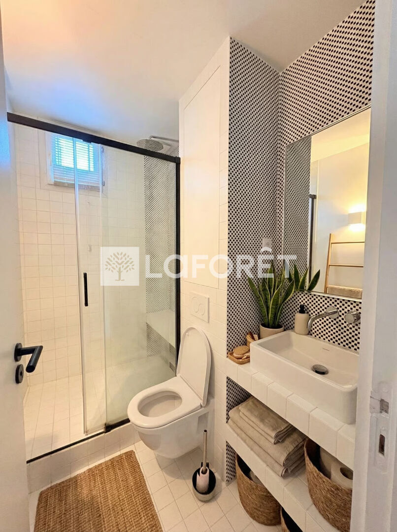 Il se compose : d'une cuisine aménagée et équipée, ouverte et fonctionnelle, d'un bel espace a vivre , d'une chambre parentale ainsi que d'une grande salle de bains avec WC. L'appartement est lumineux et calme.