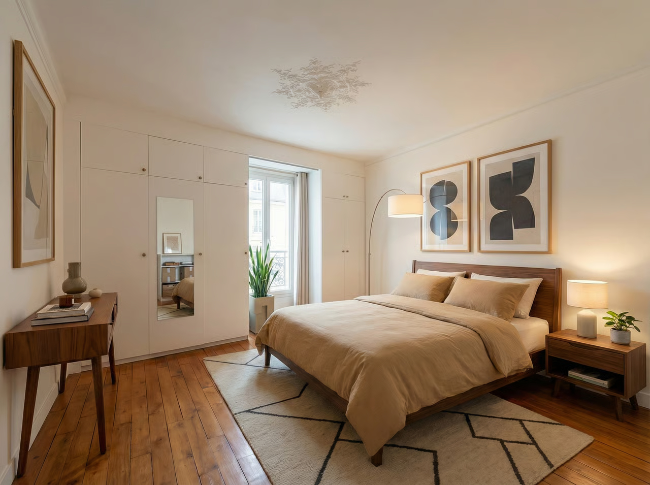 Il se compose : d'une cuisine aménagée et équipée, d'un salon spacieux, d'une chambre ainsi que d'une grande salle d'eau, un WC indépendant. Proche commerces, transports & vie de quartier.