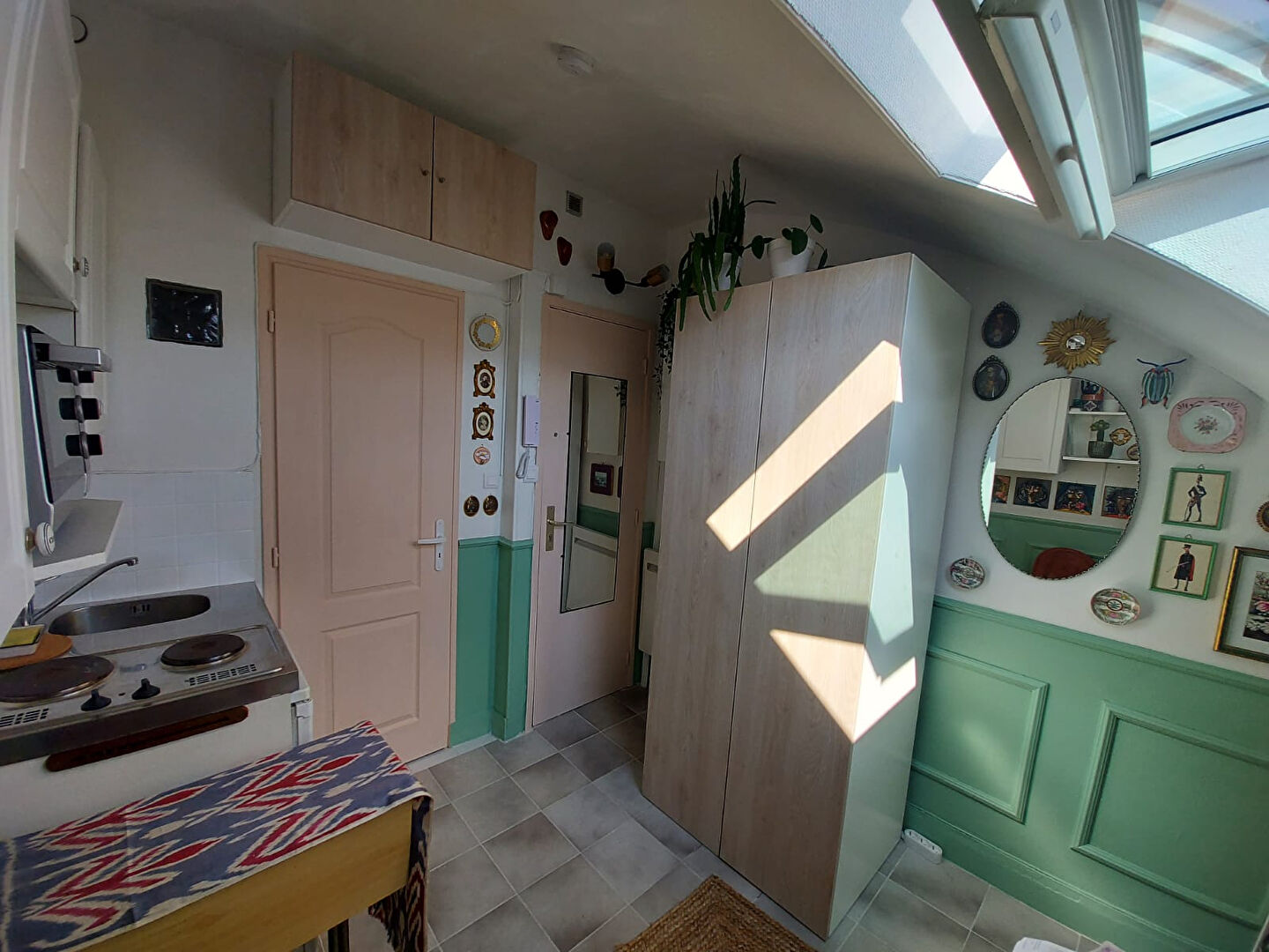 Laforêt vous propose une studette de 11.03m² au sol dont 7m² carrez situé au 7ème et dernier étage avec ascenseur d'un bel immeuble pierre de taille. Le bien est composé d'une pièce avec kitchenette, douche et wc sanybroyeur.