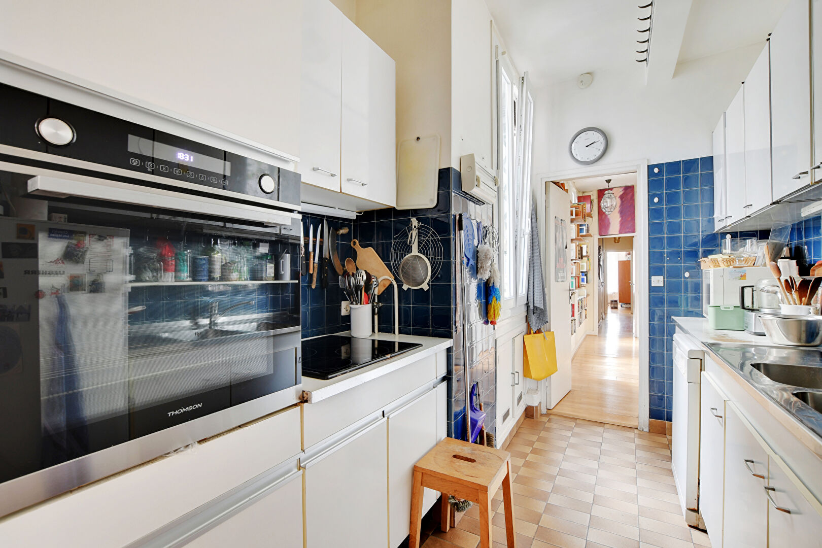 Dès l'entrée par ascenseur privatif au 2e étage, le charme agit : volumes généreux, lumière naturelle, bibliothèque en enfilade, salon de réception, coin bureau, cuisine, salle d'eau et WC. Un escalier intérieur dessert le niveau inférieur, idéal pour imaginer un espace indépendant, familial ou professionnel, avec deux chambres supplémentaires, une seconde cuisine, une salle d'eau avec WC, rangements intégrés et un accès direct à une cour végétalisée accessible seulement par l'appartement.