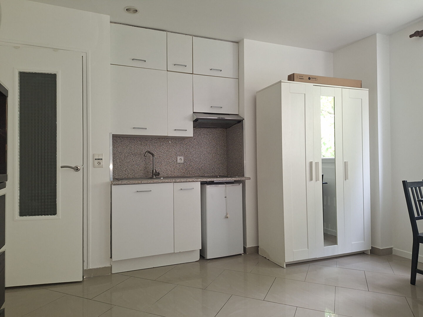 Au 3ème étage avec ascenseur, l'appartement comprend une entrée, une salle d'eau avec WC et lave-linge et une pièce principale avec Kitchenette.