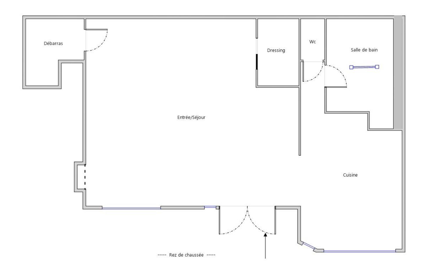 Il se compose d'une grande pièce de vie, d'une chambre en mezzanine, une cuisine séparée, d'une salle de bains et d'un wc séparé. Avec , devant, un ancien emplacement voiture qui peut être utilisé comme terrasse privative.