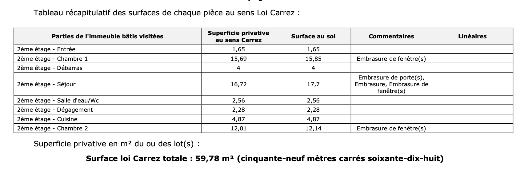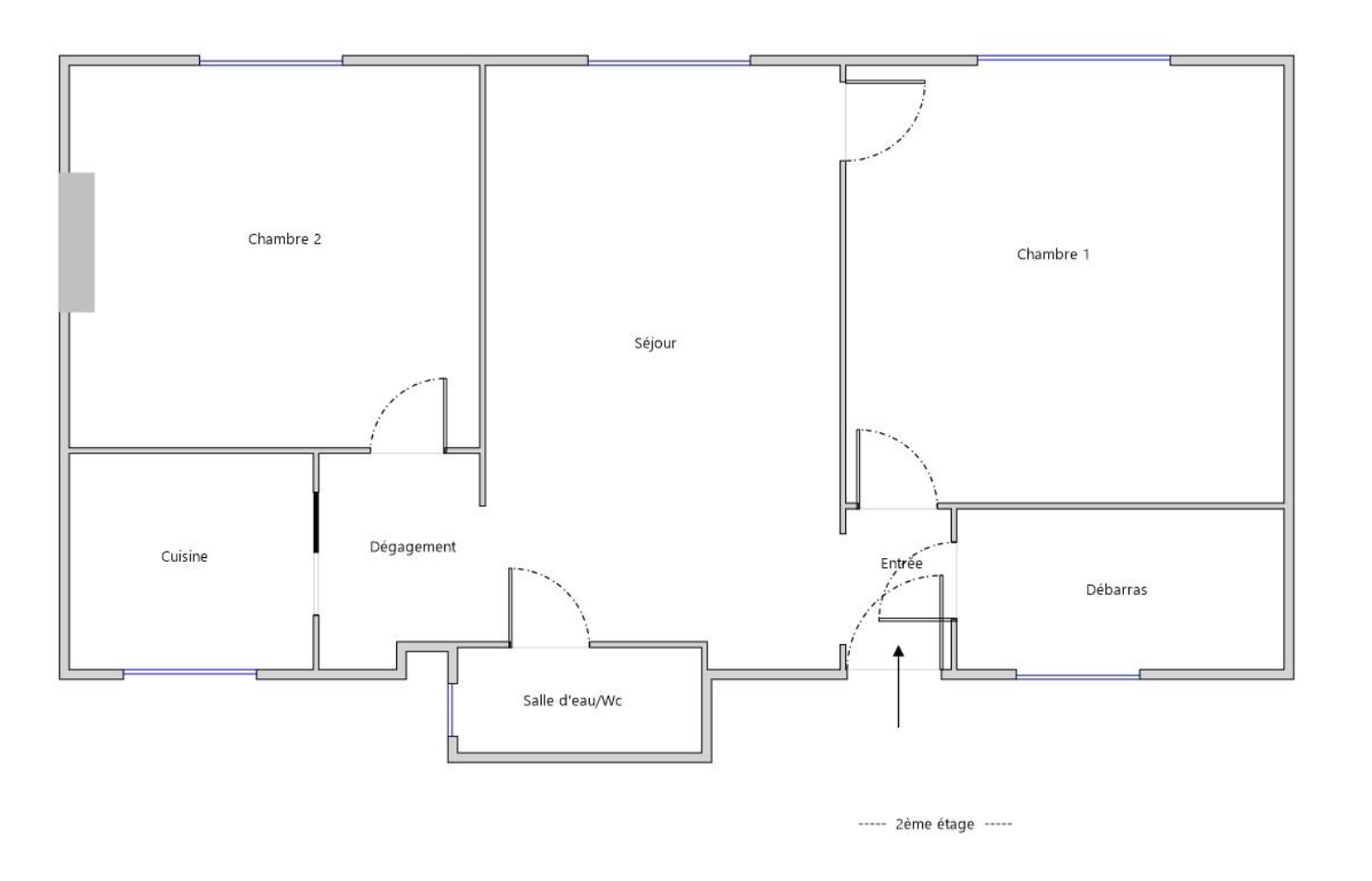 Il se compose d'une entrée, d'un dressing, d'un séjour, de deux chambres, d'une salle d'eau avec wc et une cuisine séparée.