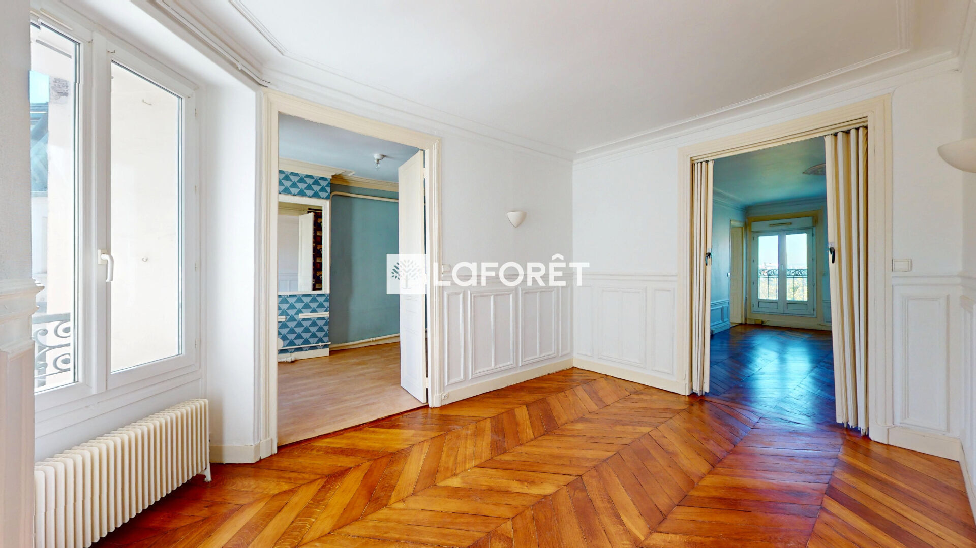 LAFORÊT PORTE SAINT-DENIS vous présente dans un bel immeuble HAUSSMANNIEN, au 5 ème étage avec ascenseur et balcon filant, un appartement de 75,29 m², se composant d'un séjour, de 3 chambres (possibilité d'avoir 2 chambres et un double séjour), d'une cuisine, d'une salle de bains et d'un WC séparé. EXPOSÉ SUD/OUEST et traversant, le bien est ensoleillé grâce à sa vue dégagée (vue TOUR EIFFEL).
