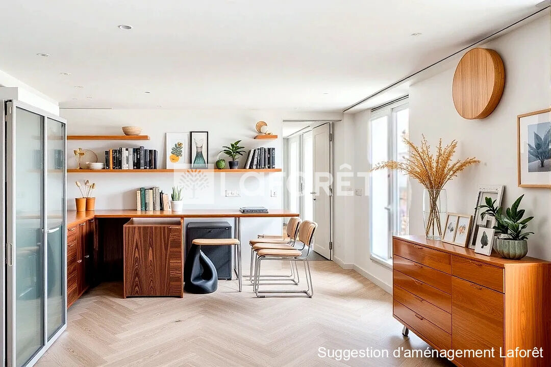 Il se compose d'un séjour avec cuisine ouverte, de deux pièces indépendantes, d'une salle d'eau et de WC séparés, offrant un plan modulable facilement.