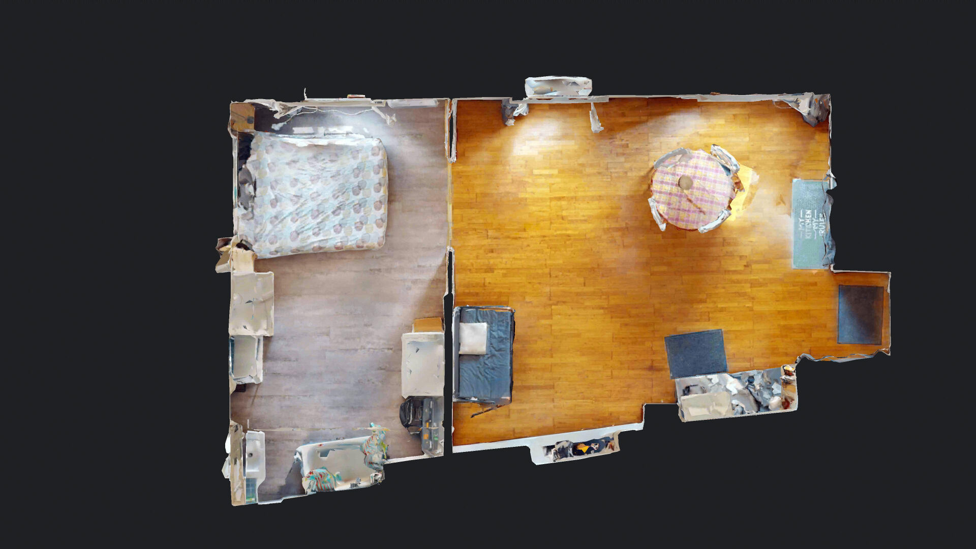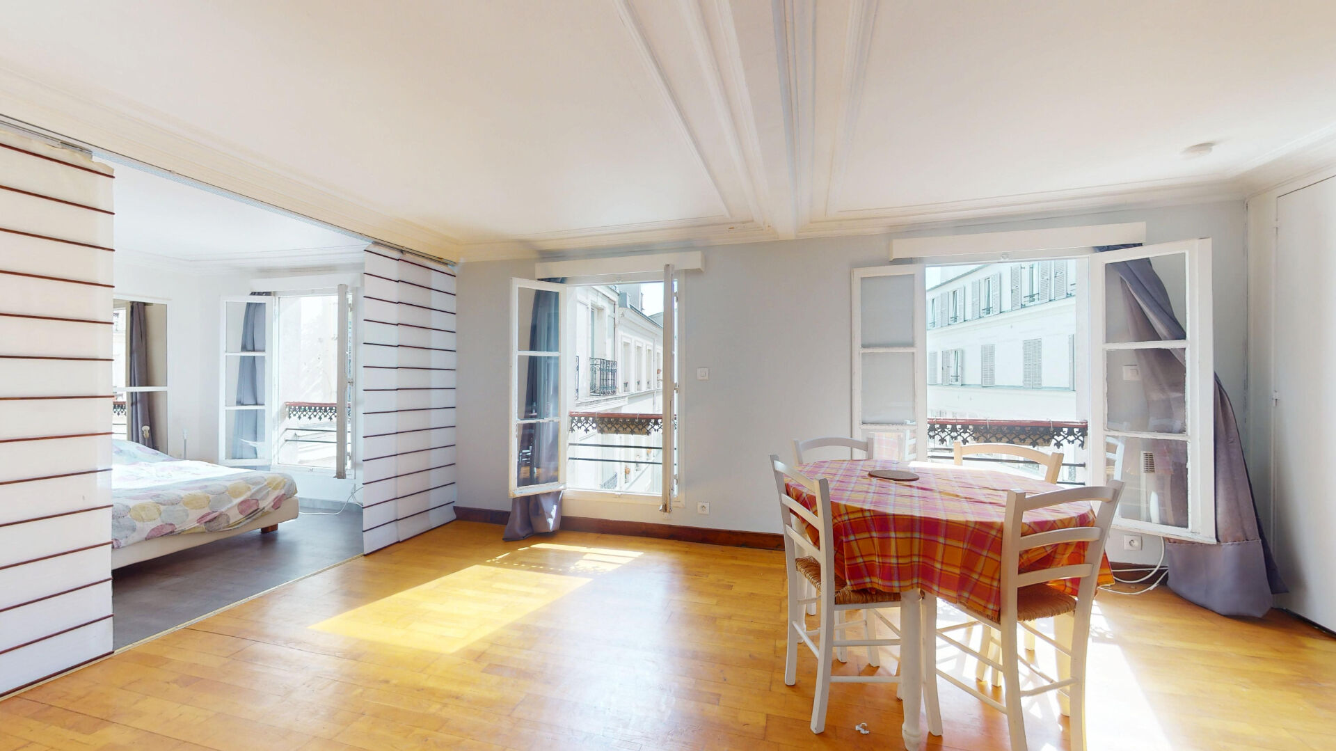 L'appartement se compose d'un spacieux séjour avec cuisine ouverte aménagée et équipée et d'une grande chambre avec baignoire sabot. WC séparés.