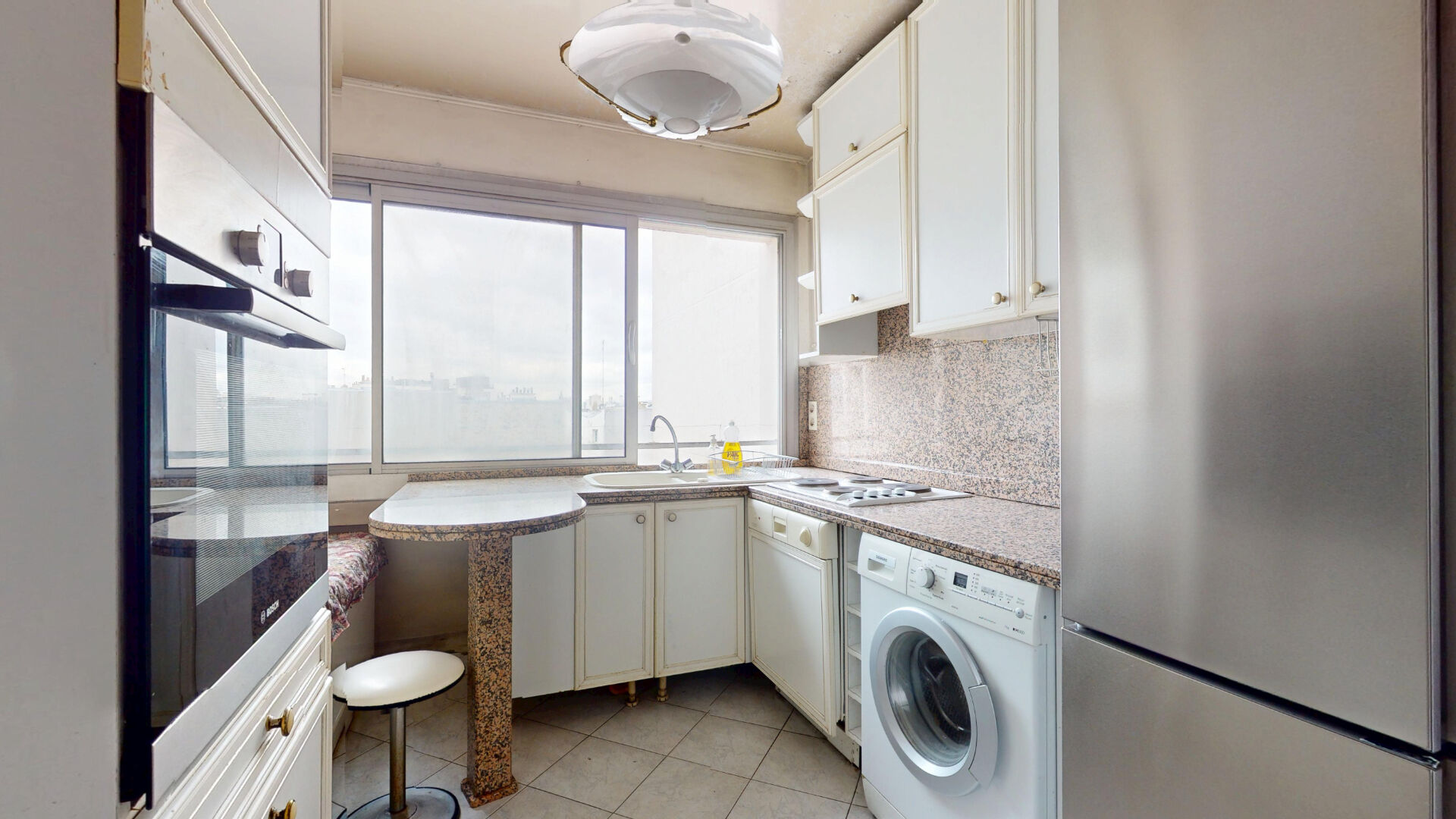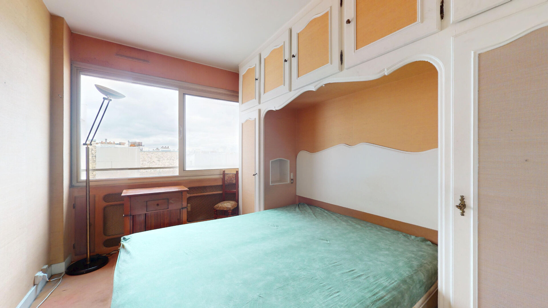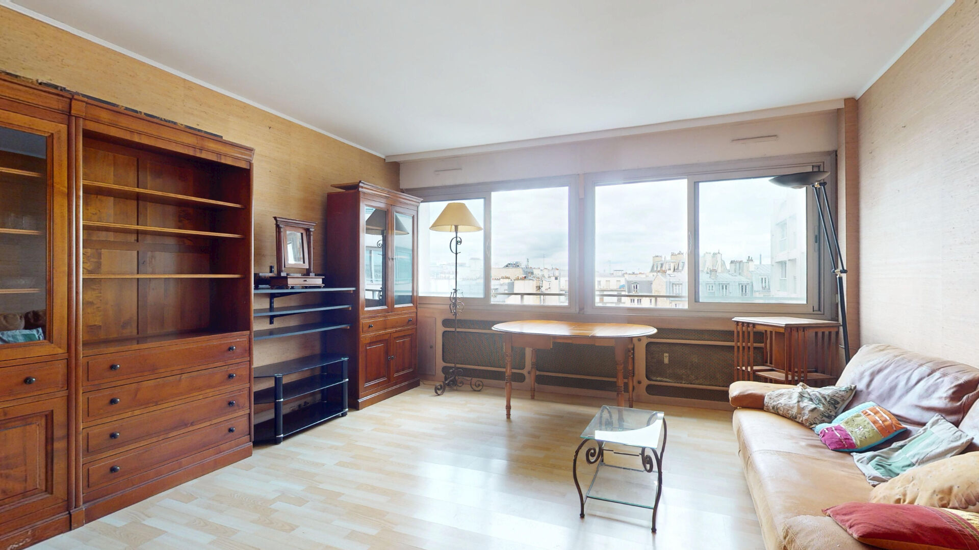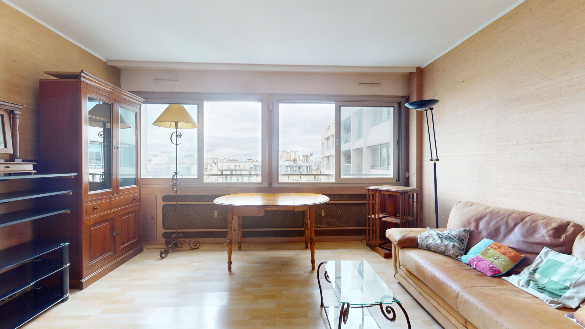 L'appartement est situé au 7ème étage par ascenseur et se compose d'une entrée, d'un séjour baigné de lumière, exposé Sud Ouest avec une vue dégagée sur les toits de Paris et la Tour Eiffel, d'une cuisine aménagée et équipée, d'une chambre, d'une salle de bains et d'un WC séparé avec lave main.