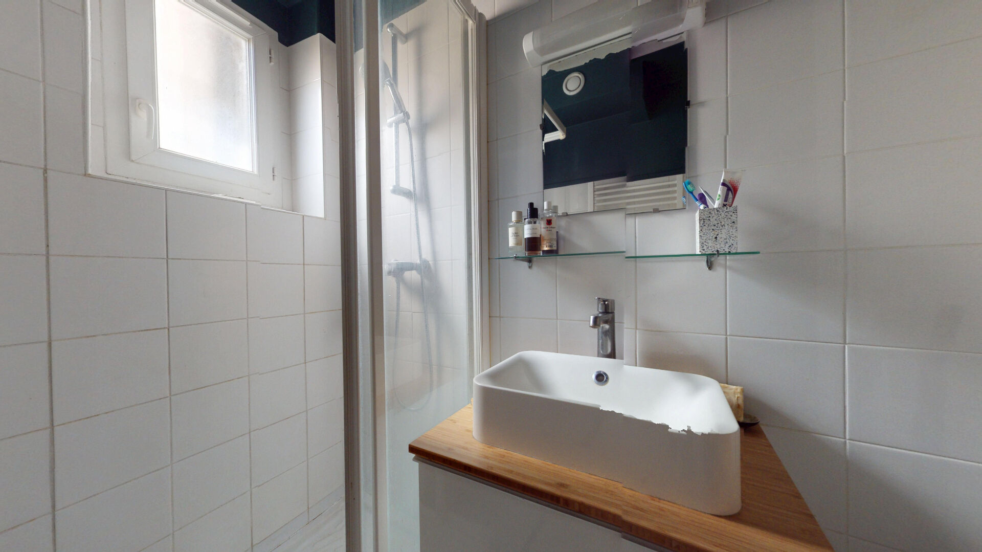 Cet appartement est composé d'une entrée, d'un séjour très agréable avec une cuisine ouverte sur mesure entièrement aménagée et équipée refaite par architecte, d'une chambre sans vis à vis donnant sur cour avec de nombreux rangements sur mesure et d'une salle d'eau avec WC.