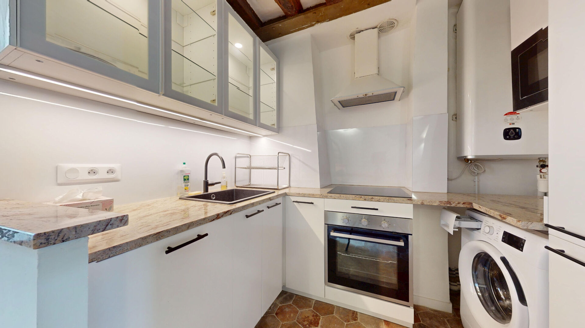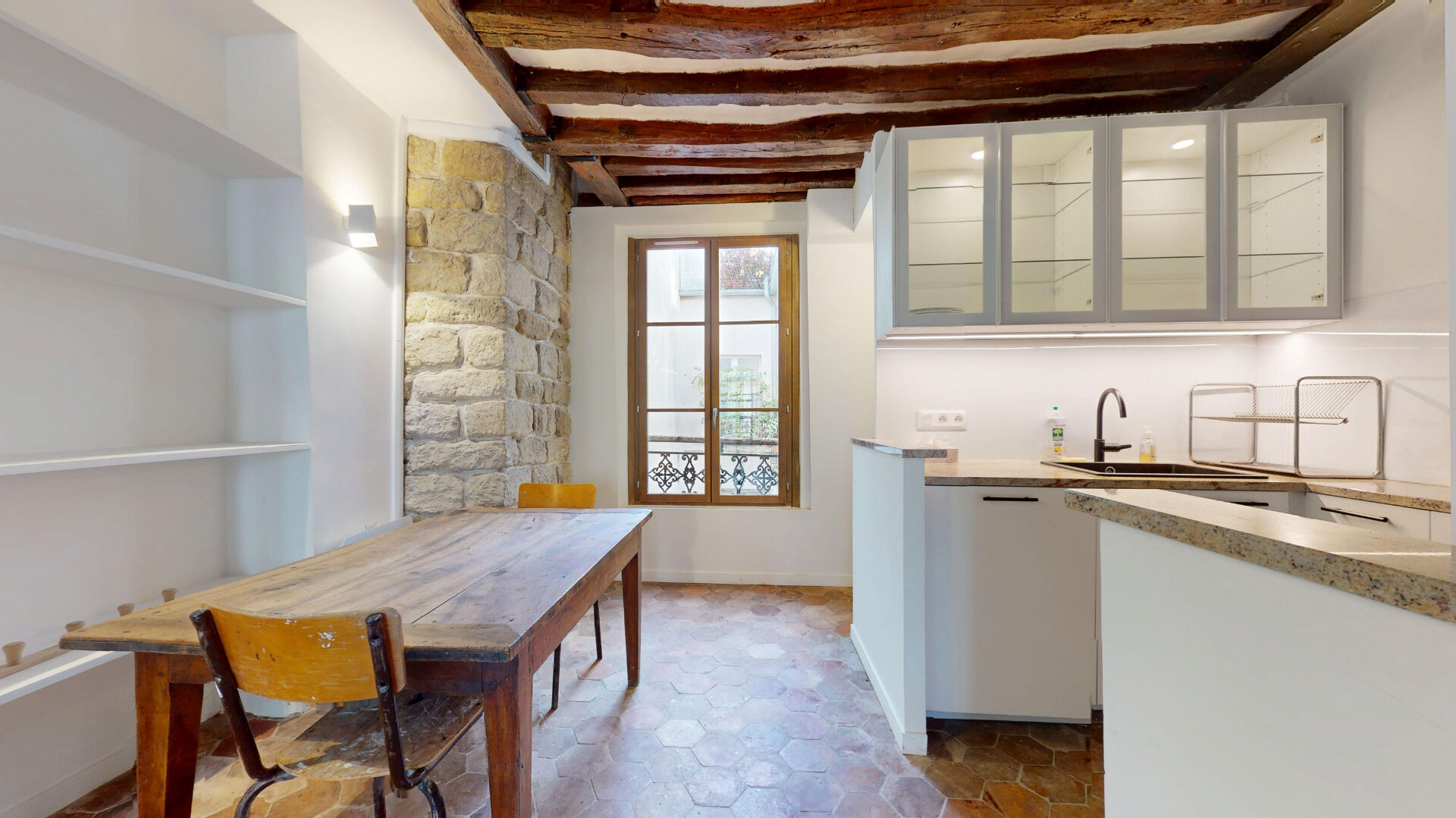 Appartement d'environ 40m², d'une pièce principale, composé d'une pièce principale avec une cuisine équipée et aménagée, d'une chambre et d'une salle d'eau et des WC séparé.