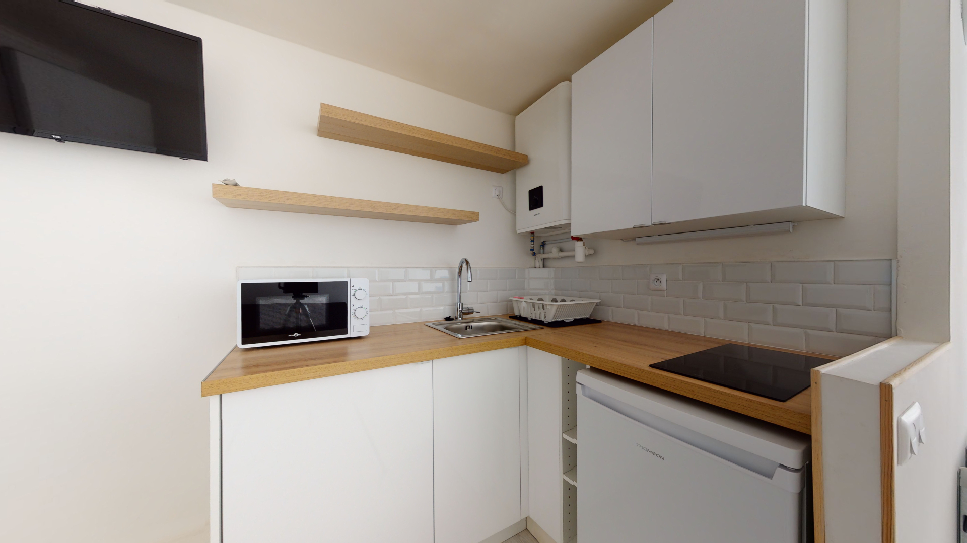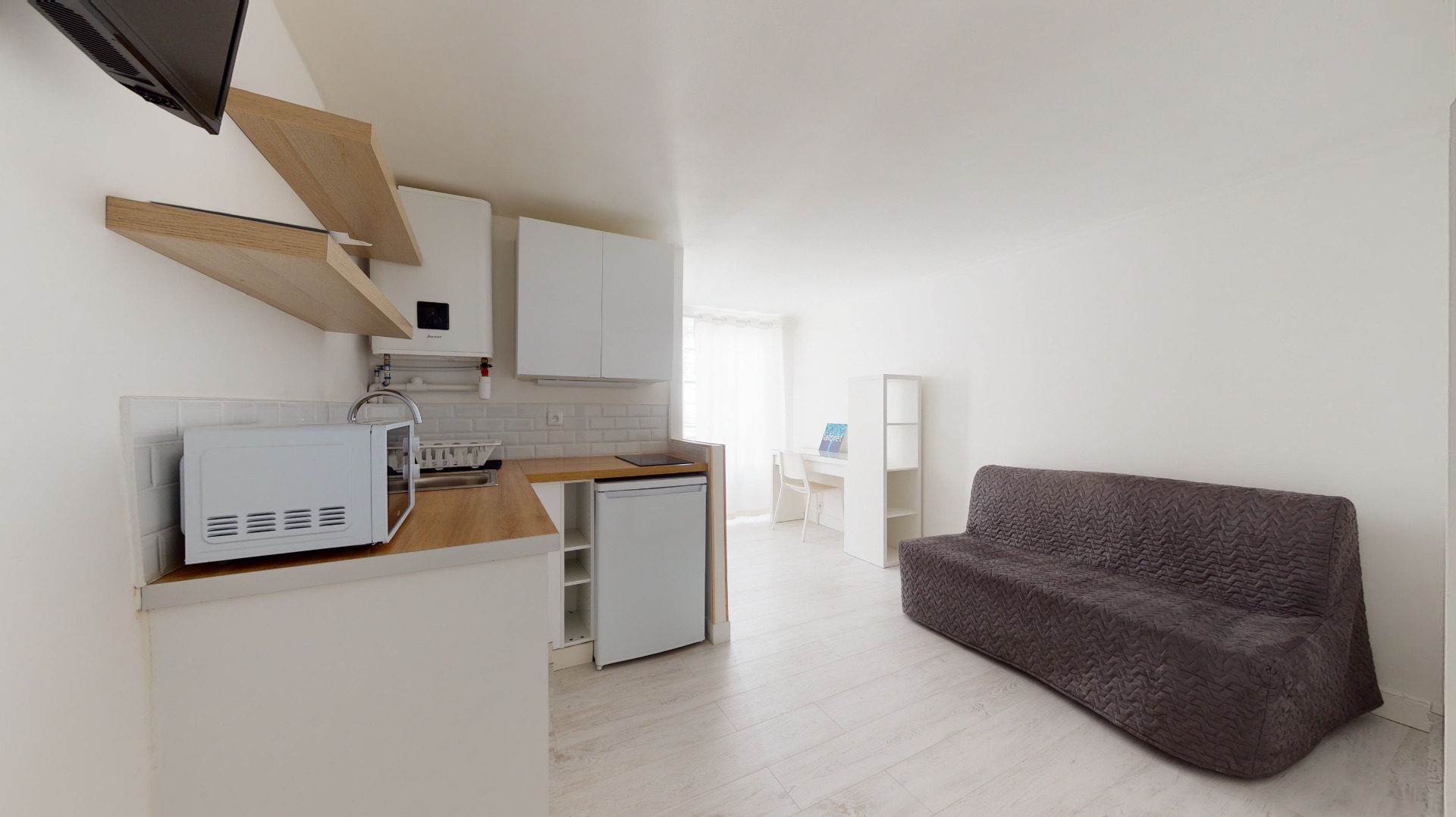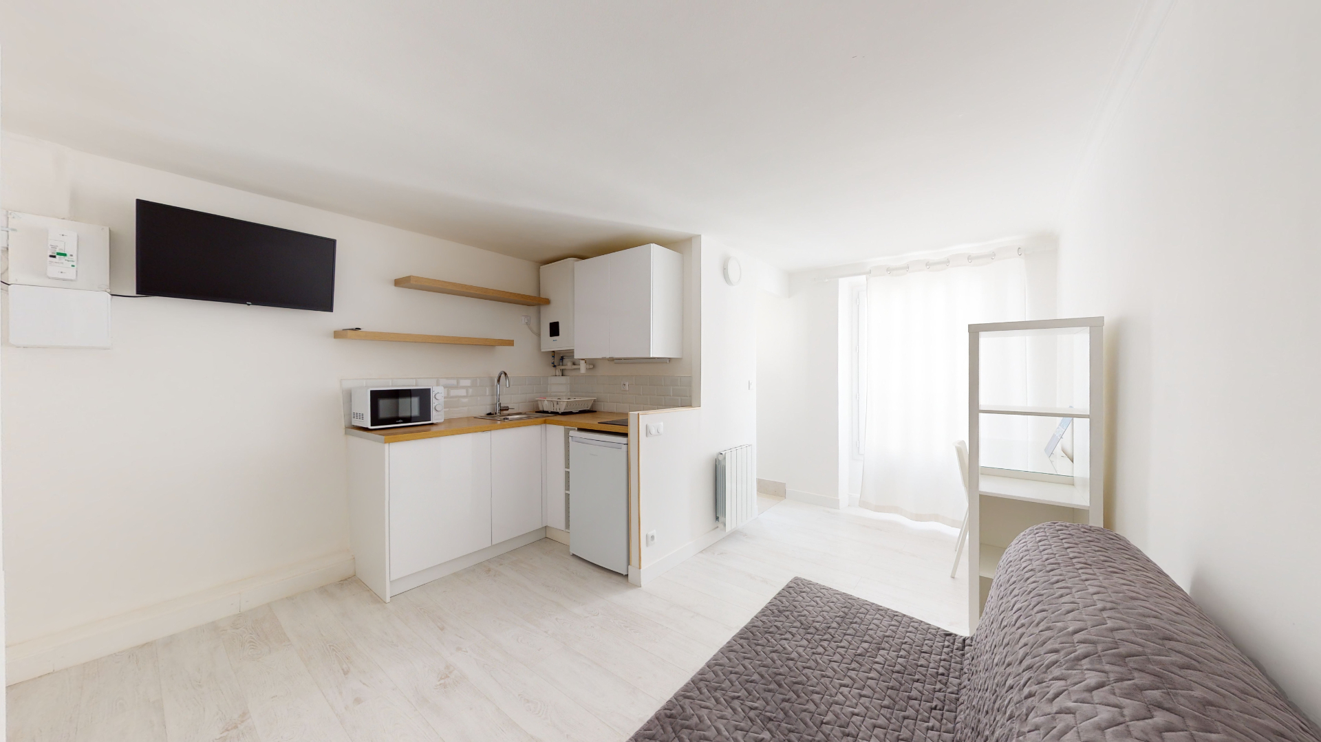 Studio meublé situé rue Pierre Dupont, a deux pas du canal Saint-Martin comprenant une cuisine aménagée et équipée, une pièce de vie avec un grand placard ainsi qu'une salle d'eau.