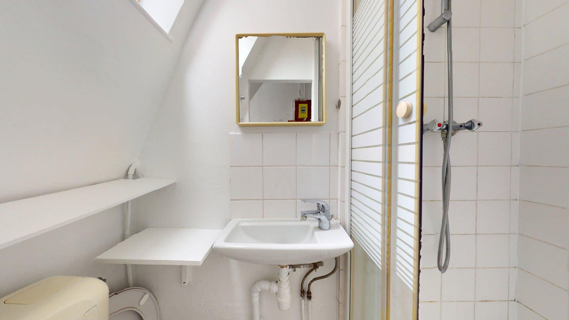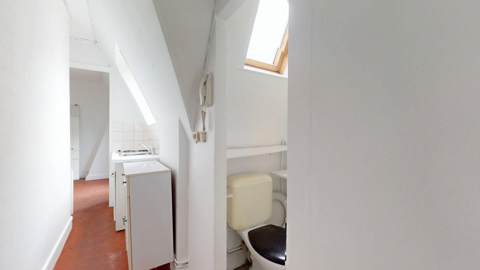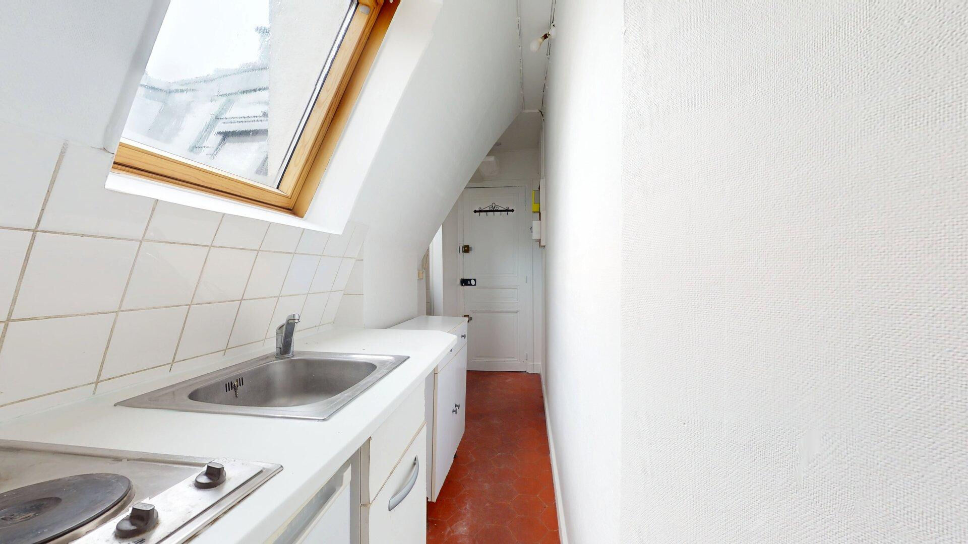Sur cour, au calme et clair, il se compose d'une salle d'eau avec wc, d'une kitchenette, d'une pièce principale avec une grande fenêtre