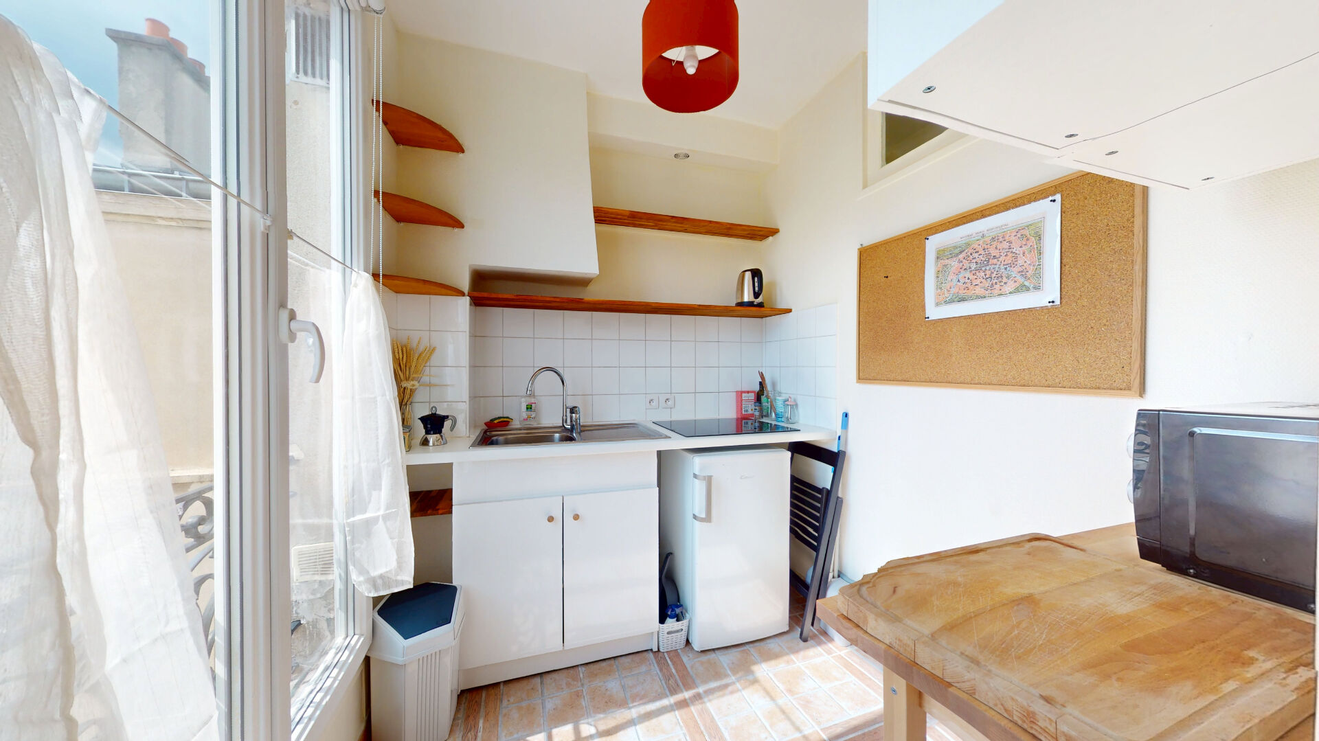Au 6ème et dernier étage avec ascenseur, au calme et lumineux, disposant du charme de l'ancien, il se compose d'une entrée, d'une salle d'eau avec machine à laver le linge, d' un wc sanibroyeur , d'une pièce principale, d'une cuisine séparée aménagée et équipée.