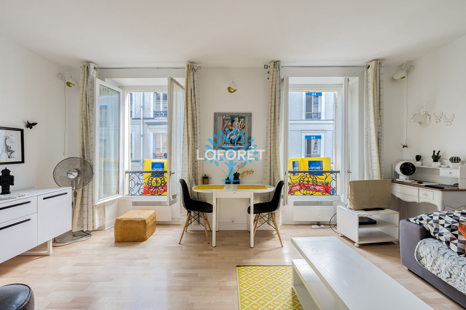 Un bien qui comprend : une entrée avec rangements, un beau séjour extrêmement lumineux avec parquet et ces 2 fenêtres laissant ouvrir une exposition SUD-EST. Une cuisine américaine aménagée et équipée, une salle de bain avec WC et un coin nuit en alcôve. Bénéficiez d'un emplacement central proche de toutes commodités et à proximité des transports.