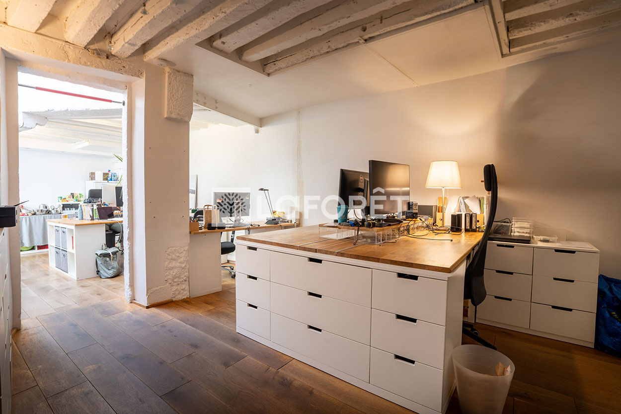 Ces bureaux séduisent par leur cachet de l'ancien : poutres et pierres de taille apparentes, et une grande verrière apportant une lumière naturelle généreuse.