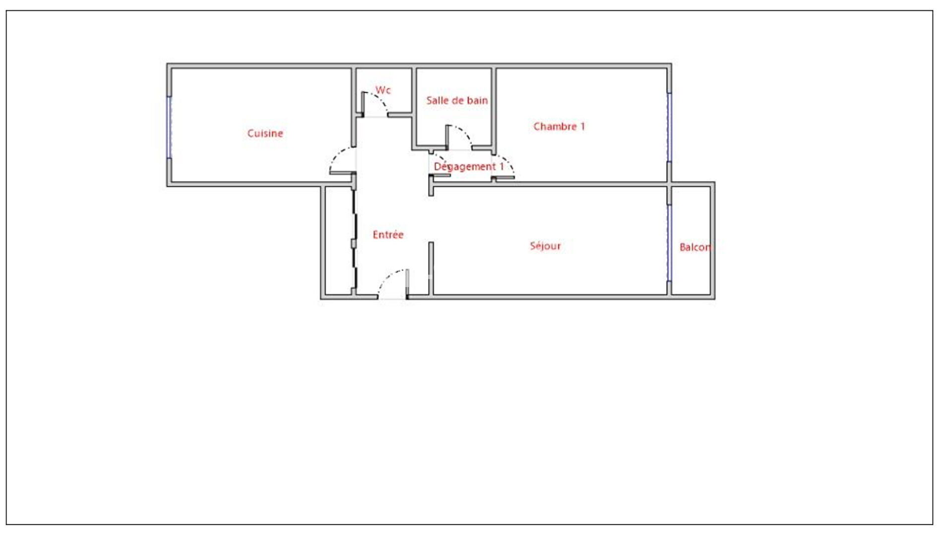 Il comprend: entrée, séjour avec balcon, cuisine indépendante aménagée et équipée, chambre, salle de bains et WC séparé.