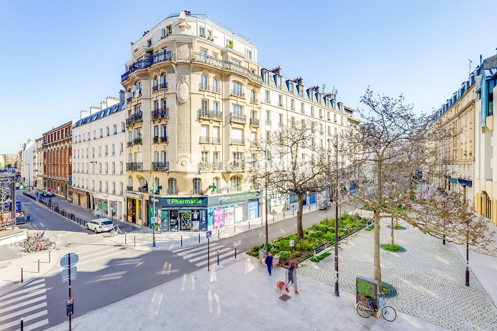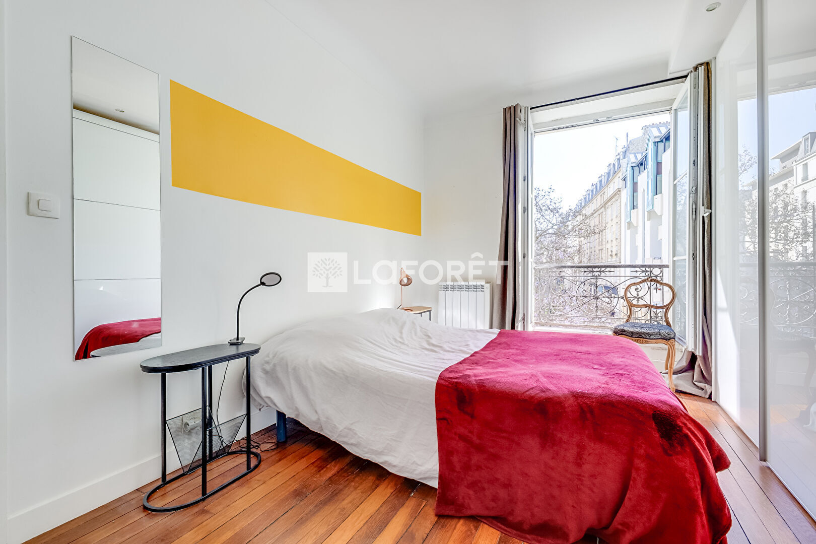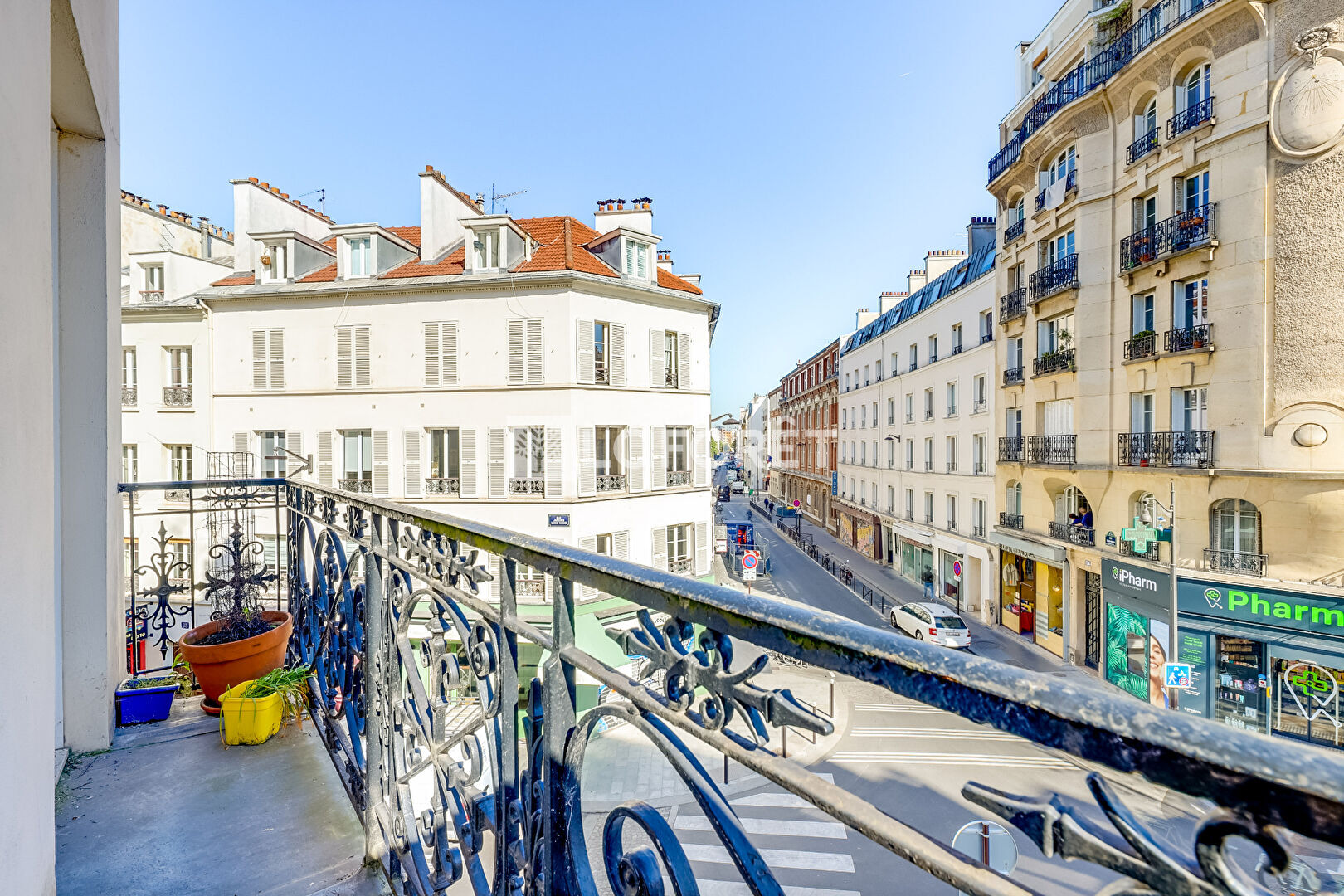 2 pièces très lumineux grâce à ses trois fenêtres dans le séjour et sa vue d'angle sur la place du Buisson St Louis.
