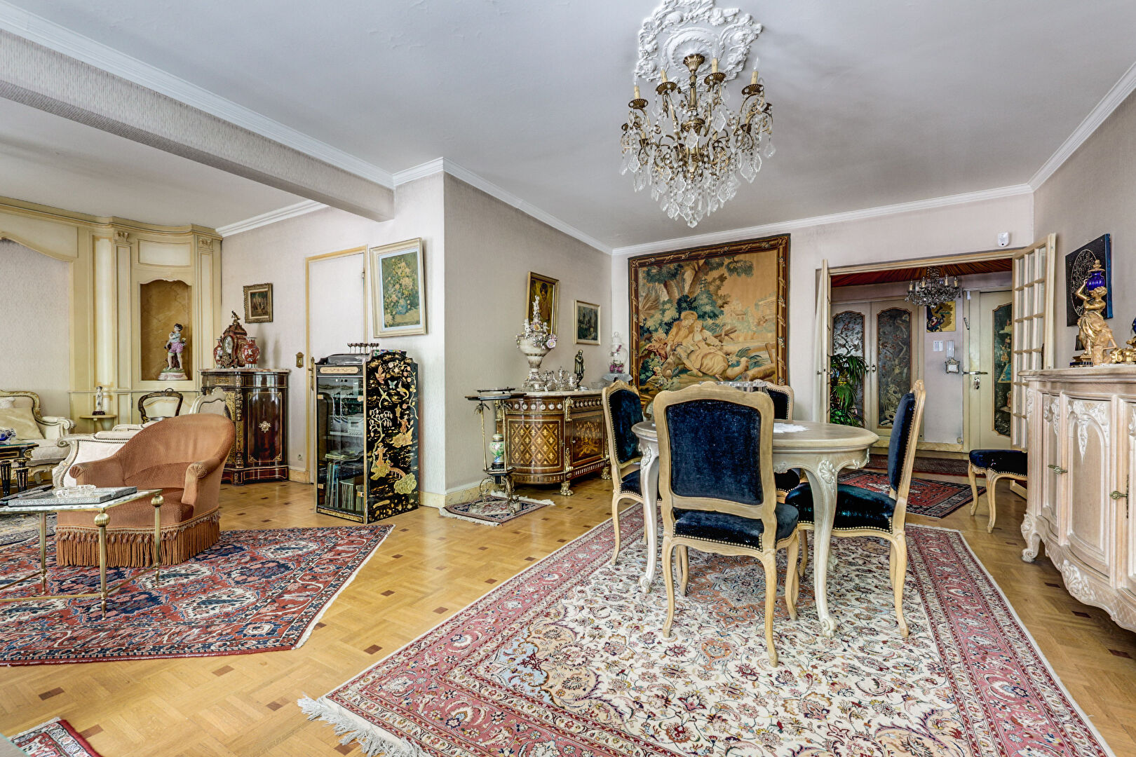 Appartement de 115m2 offrant une entrée, un double séjour donnant sur balcon de 10m2, une cuisine séparée (possible ouverture sur le séjour),deux chambres (possible trois), une salle de bains, une salle d'eau, deux WC et de nombreux placards de rangements.