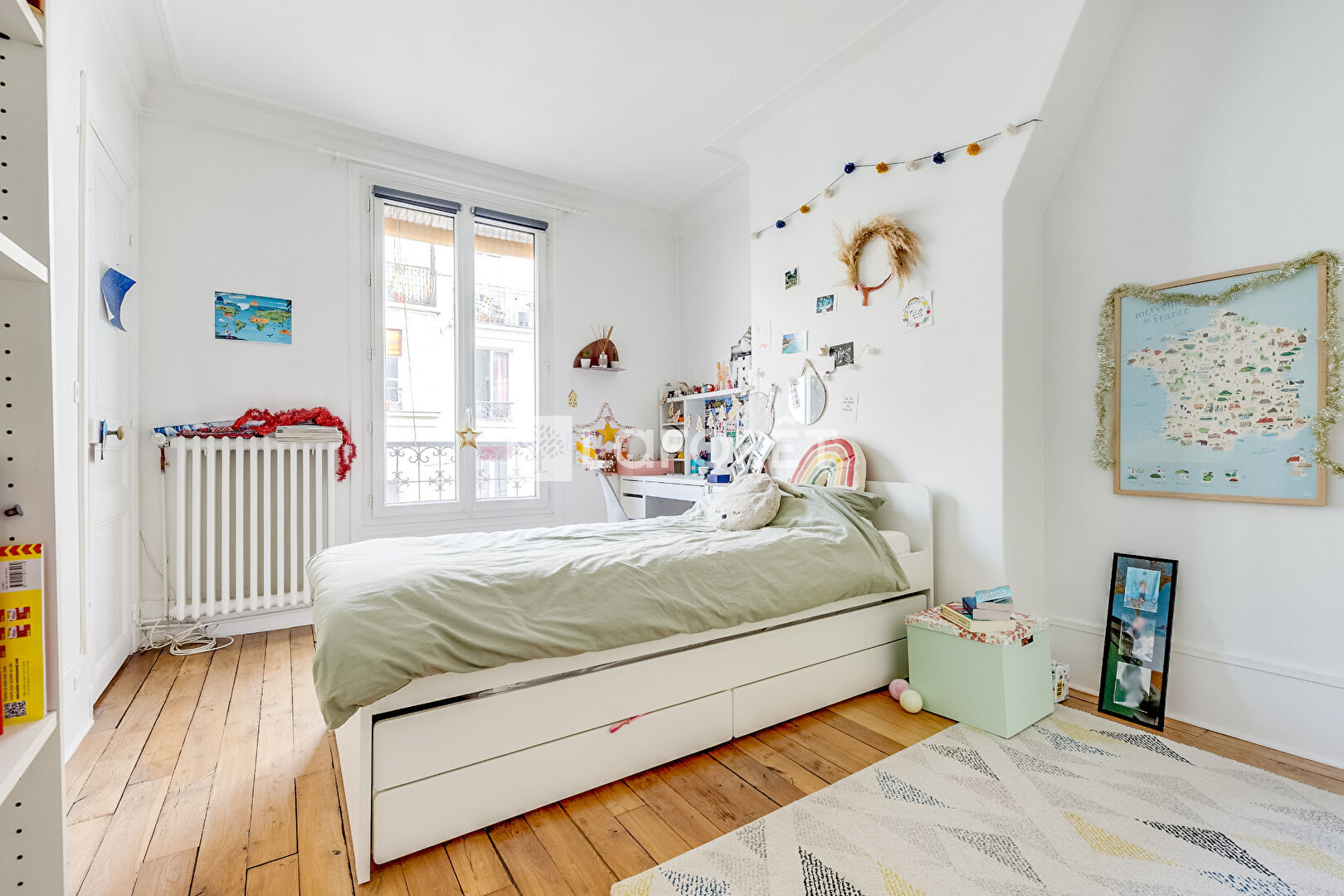 Un escalier intérieur mène au 4ème étage où se trouvent deux chambres, un bureau, une salle de bains et un WC indépendant, ainsi que de nombreux rangements.