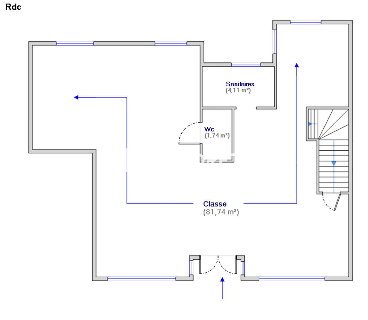 Le rez-de-chaussée se compose d'un vaste plateau d'activités de 82m2, de sanitaires/WC, relié par un escalier intérieur menant au sous-sol aménagé en souplex, bénéficiant de fenêtres sur cour apportant lumière naturelle et confort.