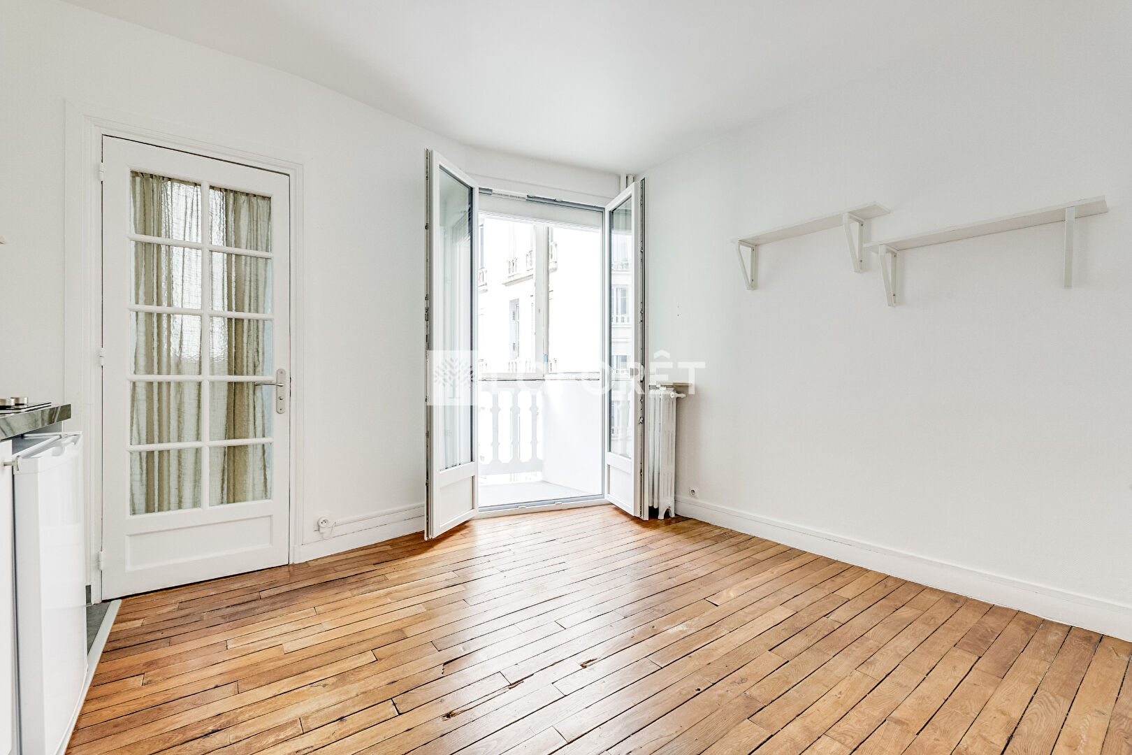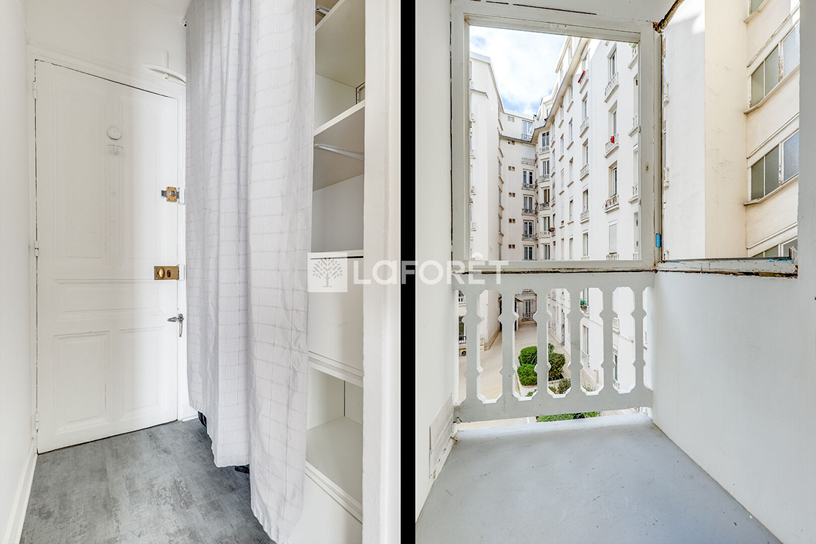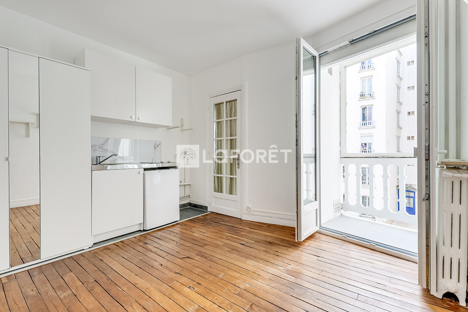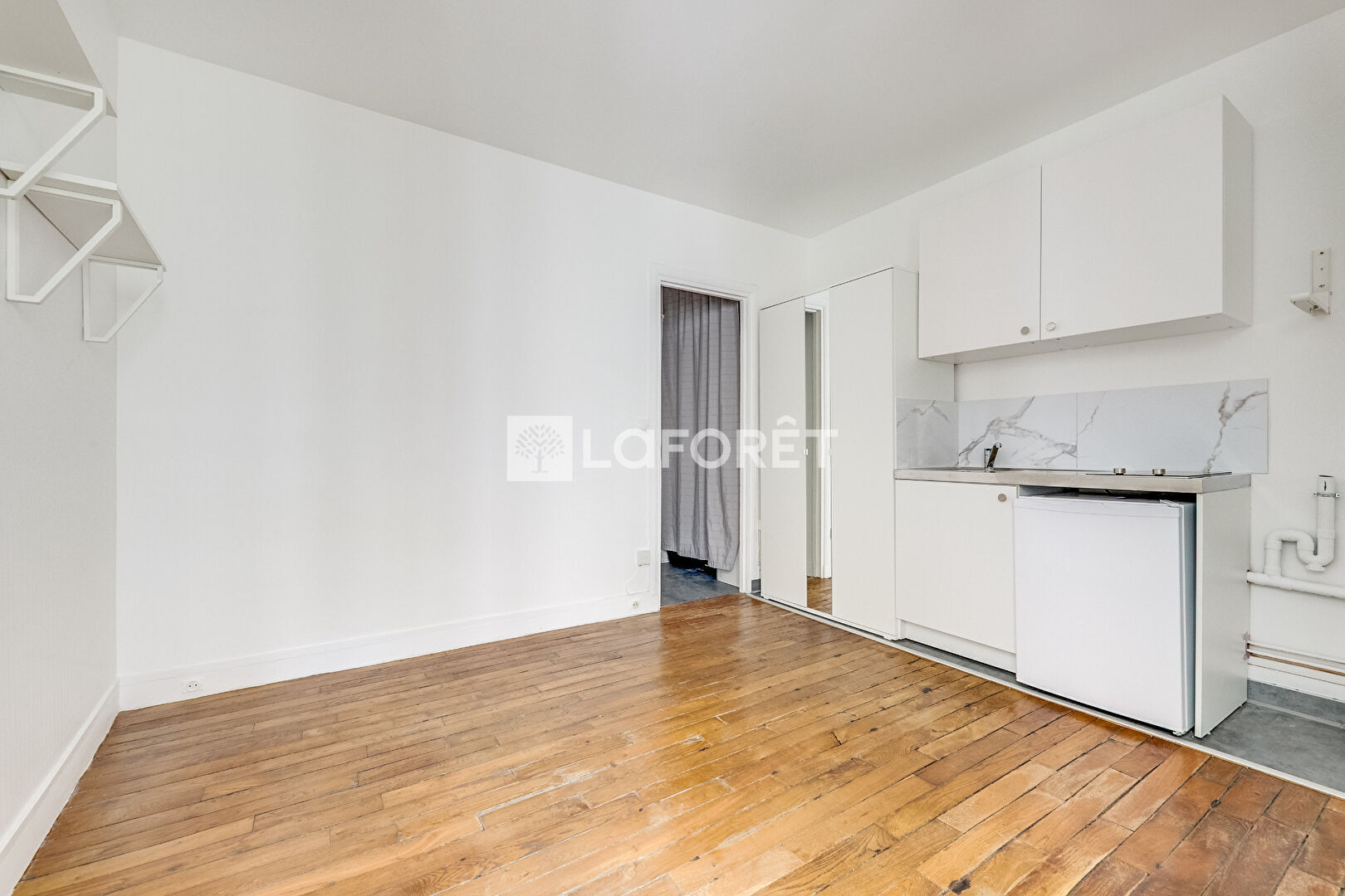 Appartement de 16m2 offrant une entrée avec rangements,une pièce à vivre avec cuisine ouverte, une salle d'eau avec WC et un balcon.