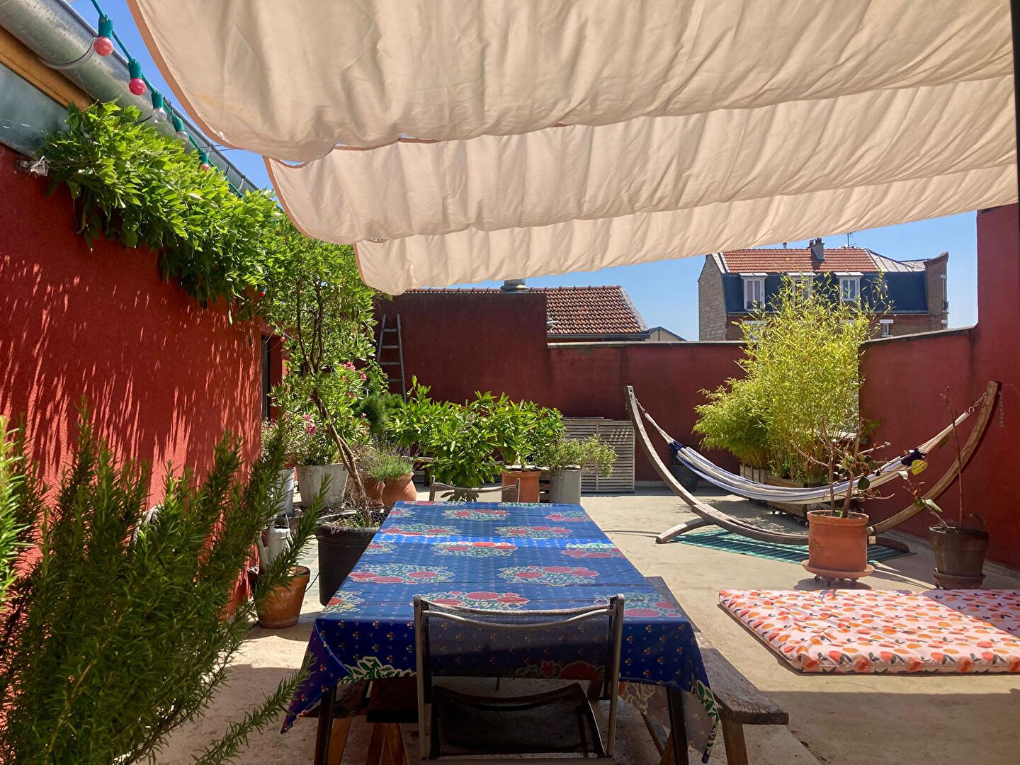 L'appartement en duplex se déploie sur une partie du 1er étage ainsi que le 2e et dernier étage, offrant un cadre de vie privilégié : espaces lumineux et bien distribués, accès à une exceptionnelle terrasse rooftop de 66 m².