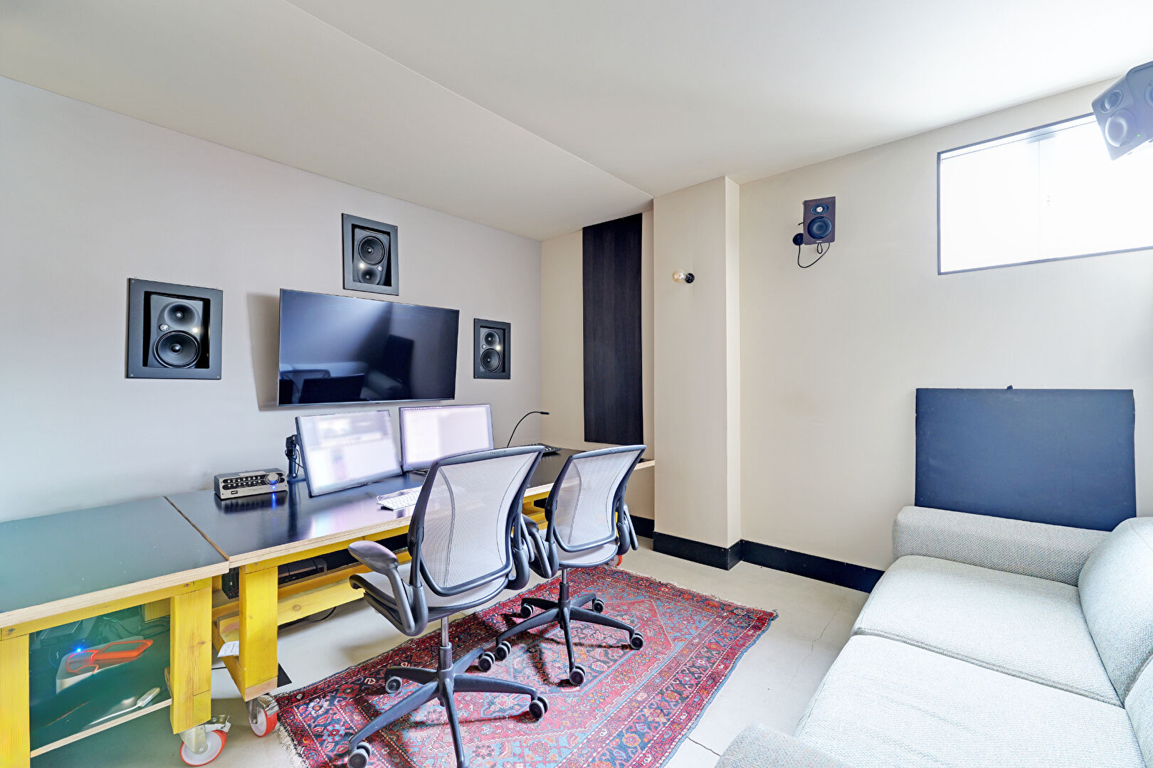 Implantée sur le rez-de-chaussée, la surface professionnelle offre un fort potentiel pour des activités créatives, audiovisuelles ou tertiaires : grand open space avec cuisine, studios de post-production cinéma, vaste salle de mixage, volumes fonctionnels et modulables, parfaitement adaptés à une exploitation spécialisée ou à une reconversion selon projet.