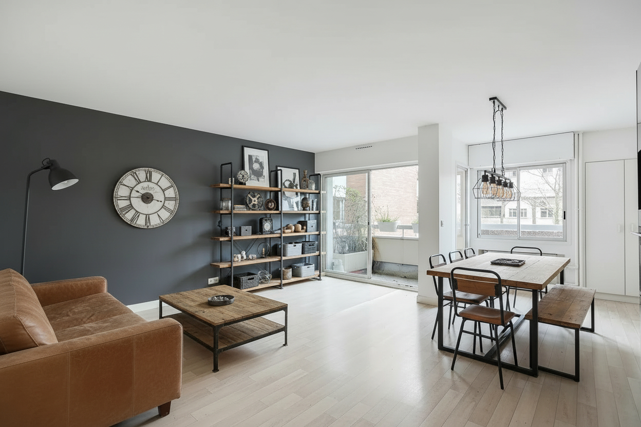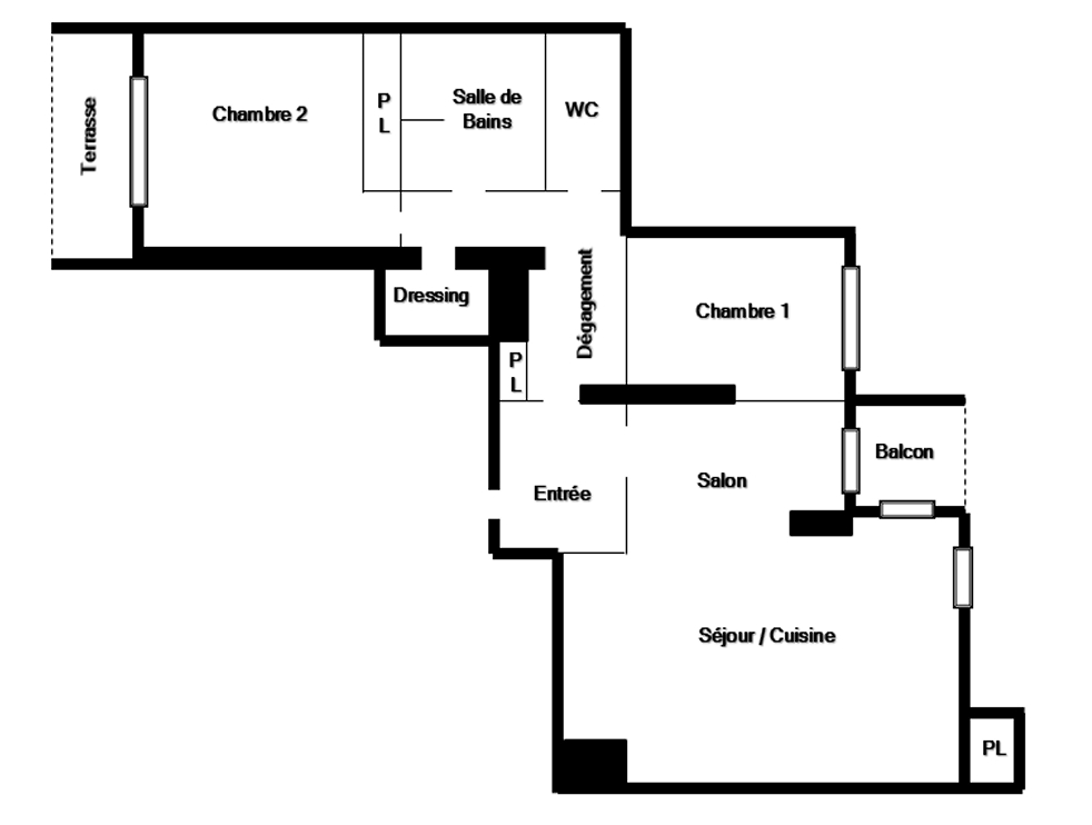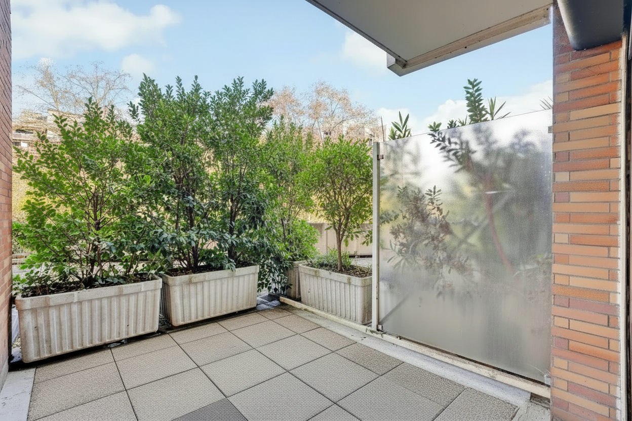 L'appartement se compose d'un grand séjour orienté sud-ouest avec vue dégagée, ouvrant sur un balcon. Attenante au séjour, une première chambre profite de la même exposition et d'un ensoleillement agréable en fin de journée. Côté nord-est, une seconde chambre avec terrasse, sans vis-à-vis, lumineuse le matin.
