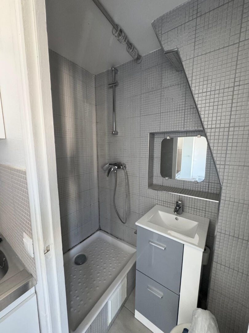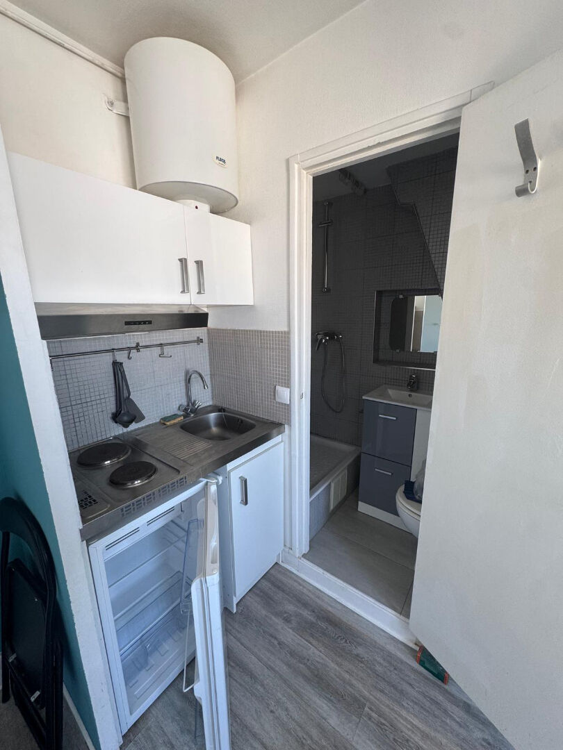 Dans une belle copropriété bien entretenue avec gardien, au 6ème étage sans ascenseur, un studio de 10m², POSSIBILITE DE LOUER EN MEUBLE, composé d'un séjour avec rangement, coin cuisine aménagée, une salle d'eau avec WC .