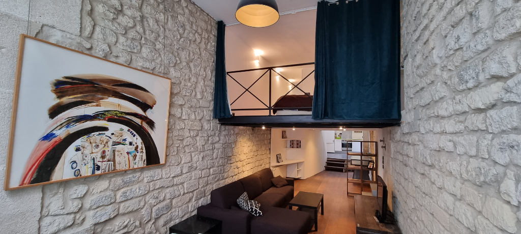 Dans ce quartier recherché du 10ème, notre agence vous propose un charmant DUPLEX MEUBLE 2 pièces avec pierres apparentes au rez-de-chaussée , comprenant un grand séjour , une cuisine aménagée et équipée avec verrière, un WC séparé, et à l'étage une chambre avec dressing , une salle de bains.