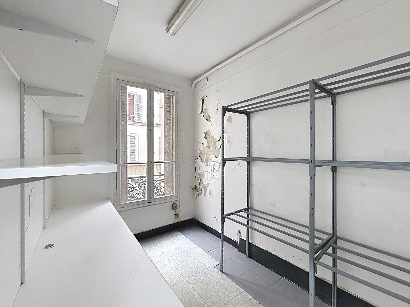 Local commercial avec accès direct sur rue, linéaire vitrine 3 mètres, organisé sur trois niveaux communicants par escalier intérieur.