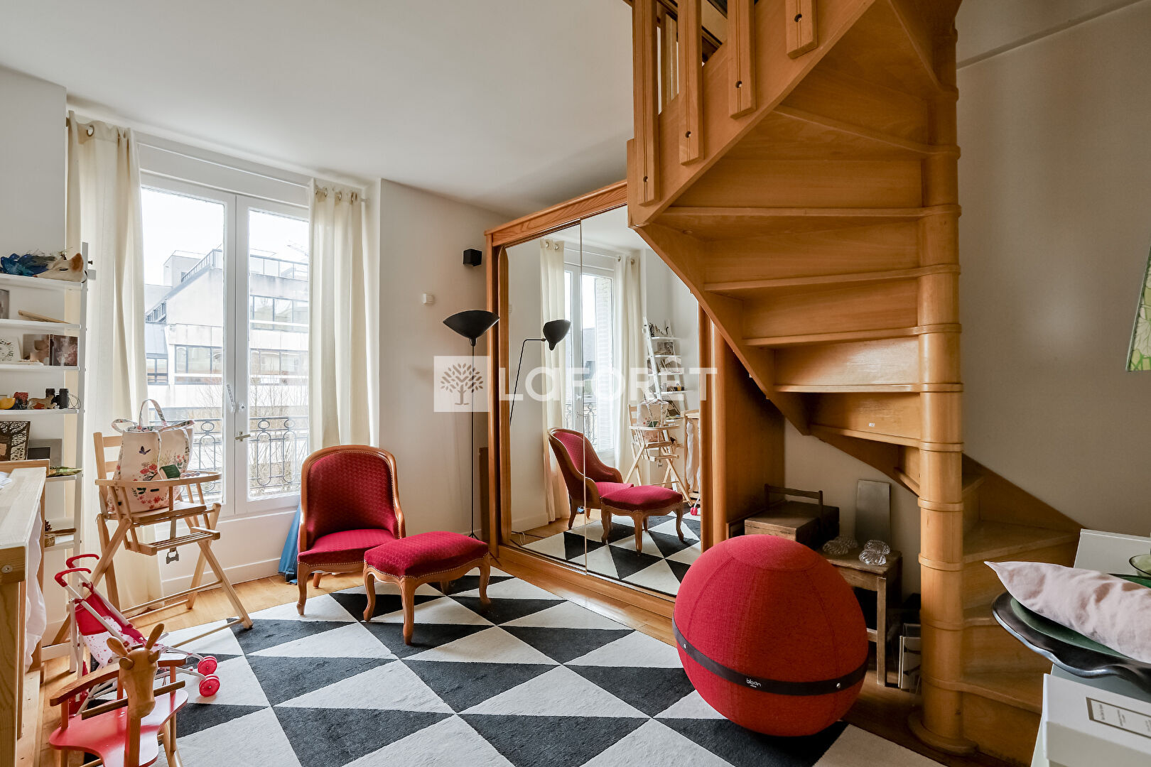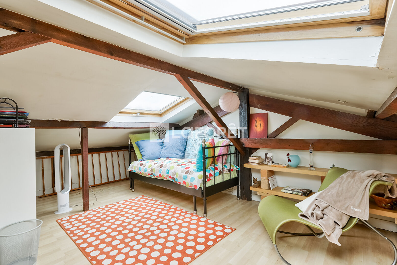 Au 5e et dernier étage avec ascenseur, ce bien rare sur le marché se distingue par ses volumes, sa luminosité et son caractère atypique.