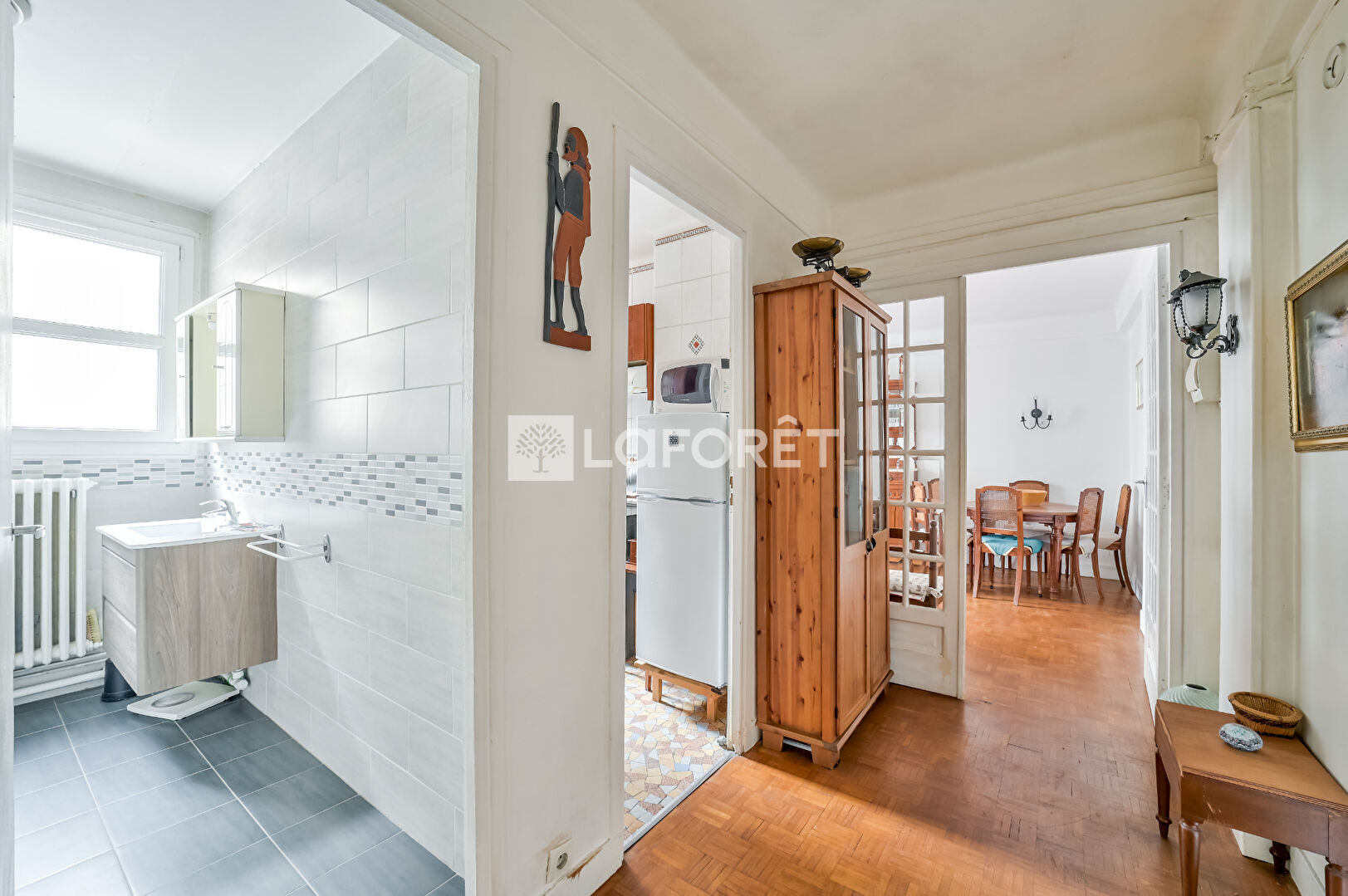 L'appartement offre une distribution fonctionnelle avec une entrée, un séjour confortable, une cuisine indépendante, une chambre, une salle d'eau récemment rénovée, un espace dressing ainsi que des WC séparés.
