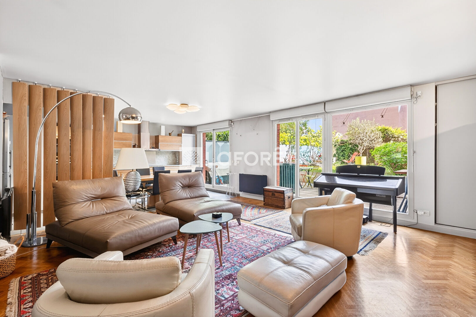 Dès l'entrée, vous découvrirez un vaste double séjour avec une cuisine ouverte donnant sur l'extérieur, idéal pour partager des moments conviviaux.