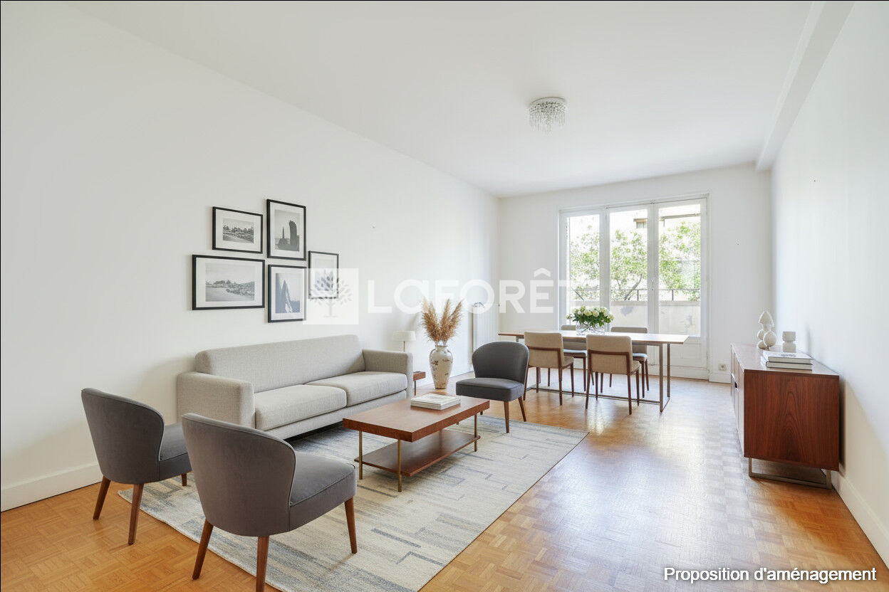 Le bien est constitué de la façon suivante : un très grand séjour lumineux et traversant donnant sur un balcon, une cuisine fermée (possibilité de l'ouvrir). Actuellement il y'a 2 chambres mais possibilité de faire une autre chambre (anciennement ce bien était un 4 pièces) ,offrant de belles perspectives d'aménagement. De plus, une salle de bains, un WC séparé et un débarras pouvant servir de dressing.