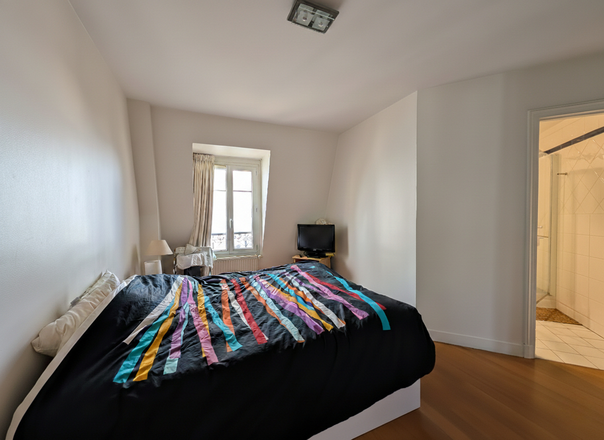 Cet appartement se compose de trois chambres, dont une suite avec salle d'eau privative et une chambre spacieuse de 18 m². L'agencement offre une séparation agréable entre le coin nuit et le coin jour, garantissant confort et intimité pour toute la famille.