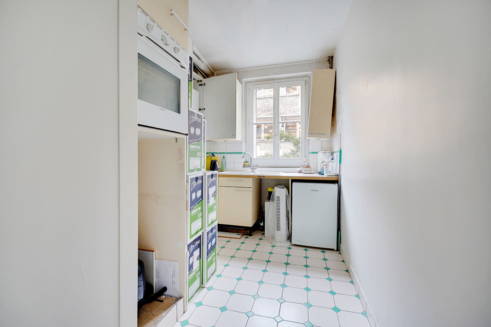 Dans un immeuble ancien en pierre et briques, avec ascenseur, en double exposition et parfaitement calme.