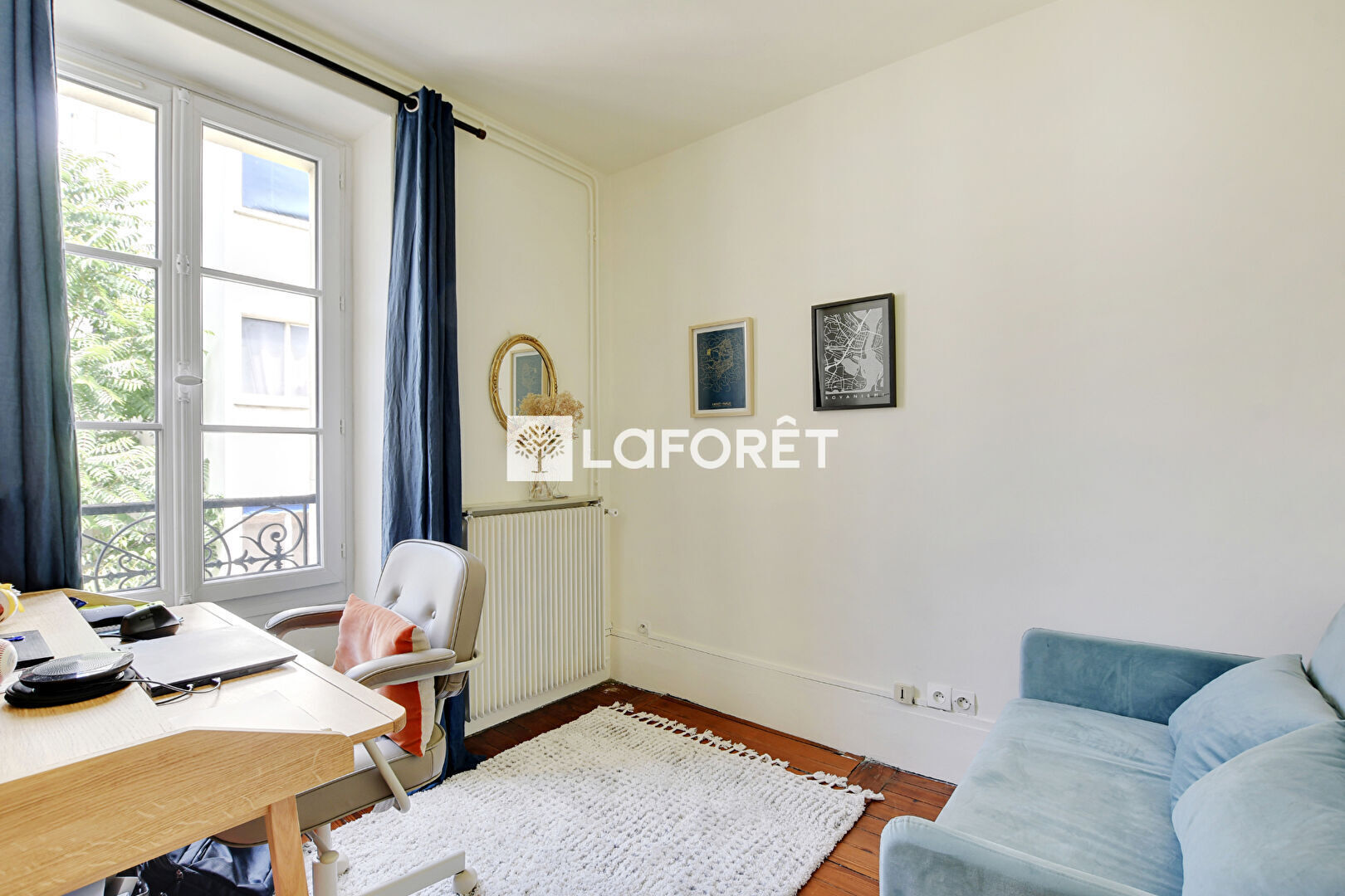 Il comprend une pièce de vie spacieuse, une chambre au calme, un coin bureau, une salle d'eau avec WC ainsi qu'une cuisine indépendante.