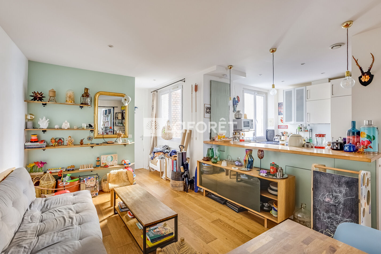 Il a su conserver tout le charme de l'ancien, avec une belle hauteur sous plafond et une atmosphère chaleureuse. Traversant, avec une exposition sur rue et cour, il bénéficie d'un agencement agréable et fluide.