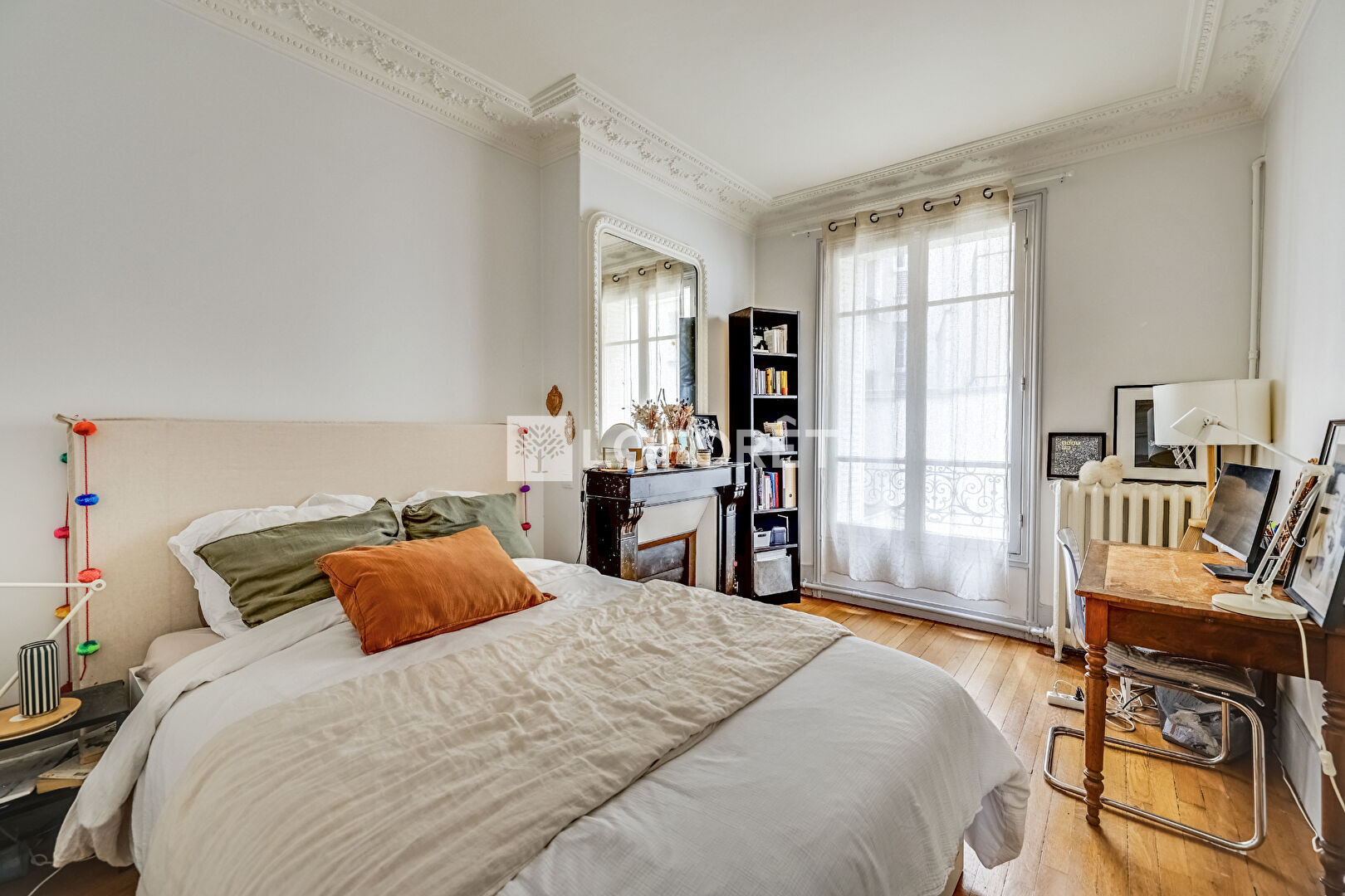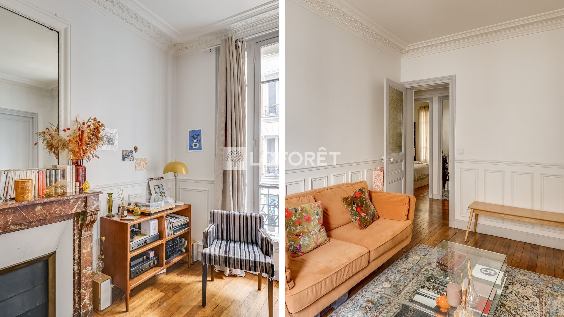 Dès l'entrée, le charme opère : parquet d'antan, moulures élégantes, boiseries, cheminée, chaque détail rappelle le cachet de l'ancien et donne à l'appartement une âme rare.