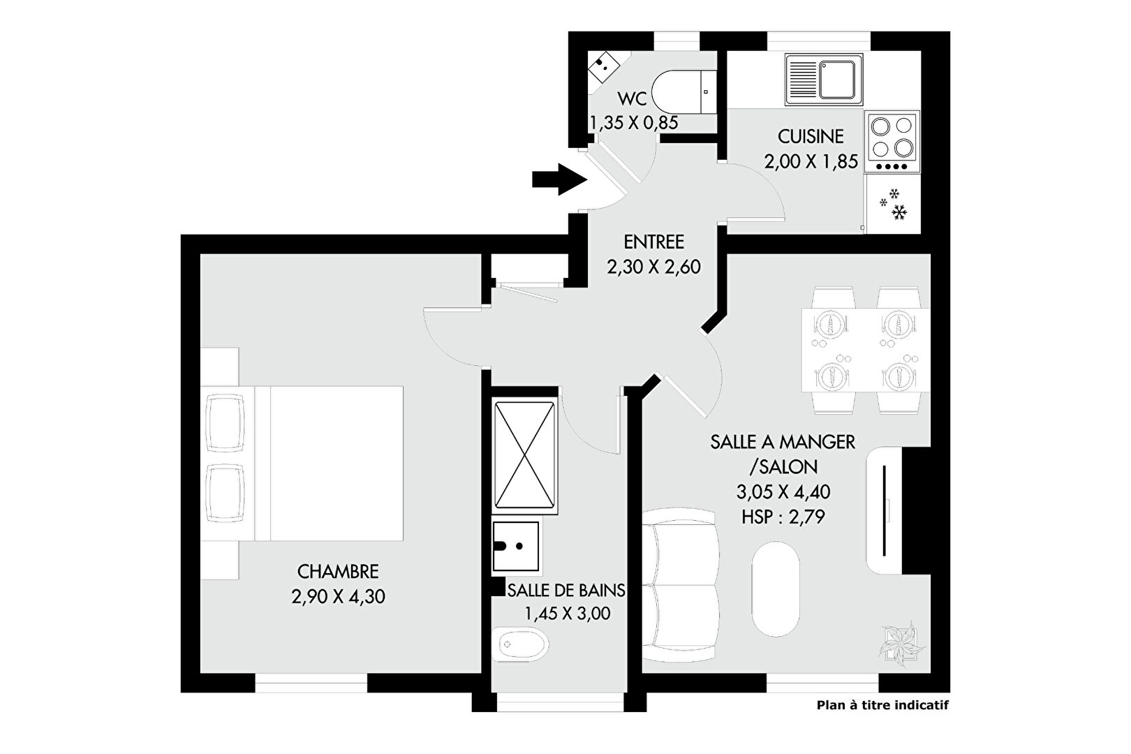 L'entrée dessert toutes les pièces : un séjour lumineux et chaleureux, une chambre aux beaux volumes, une cuisine pratique et prête à l'emploi, une salle de douche moderne avec espace machine, un WC indépendant avec lave-mains, ainsi qu'un placard de rangement.