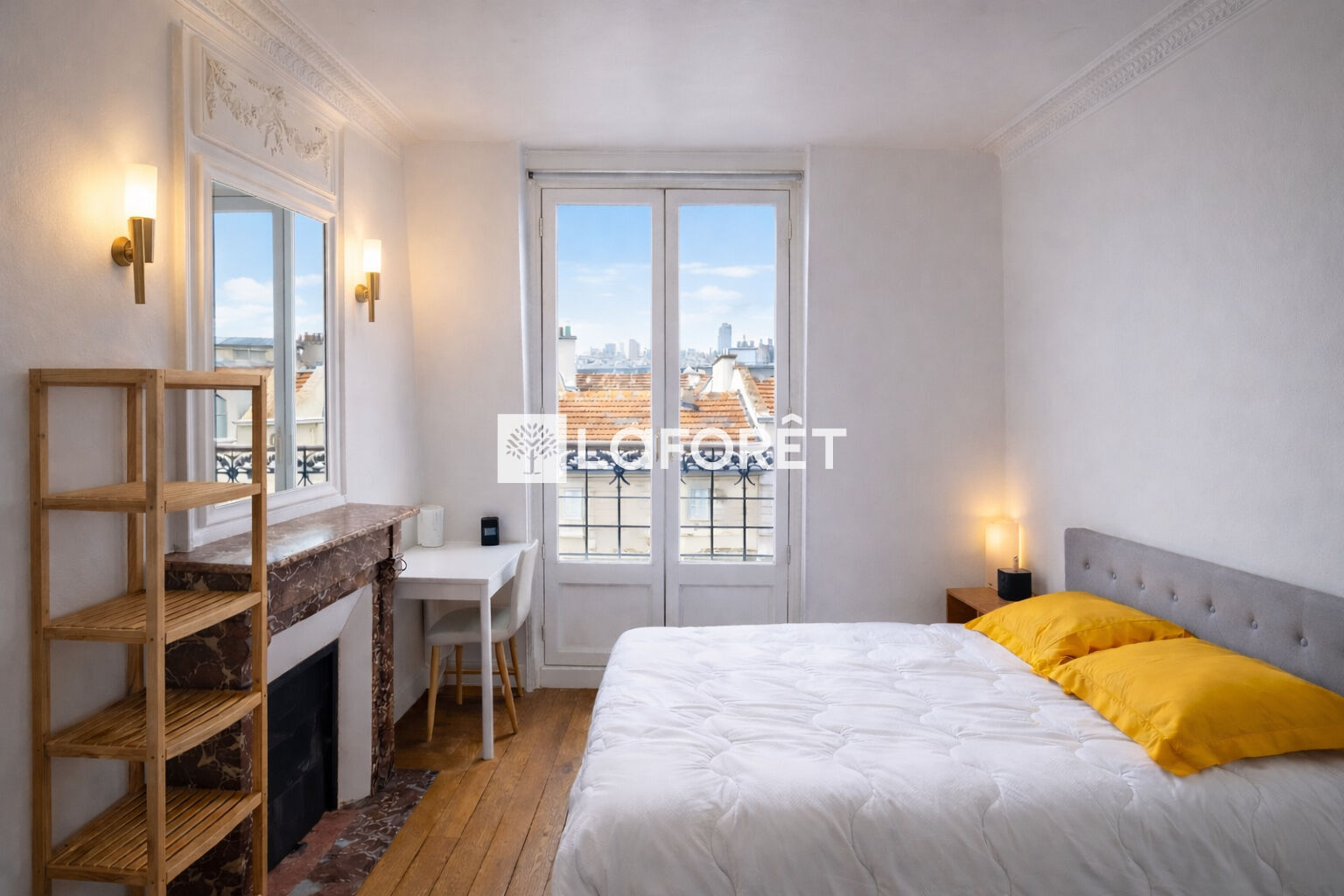 Le charme de l'ancien est au rendez-vous : parquet, moulures et cheminées d'époque. L'appartement se compose de deux chambres, chacune prolongée par un balcon offrant une vue dégagée, d'une cuisine séparée et équipée, ainsi que d'une grande salle d'eau fonctionnelle.