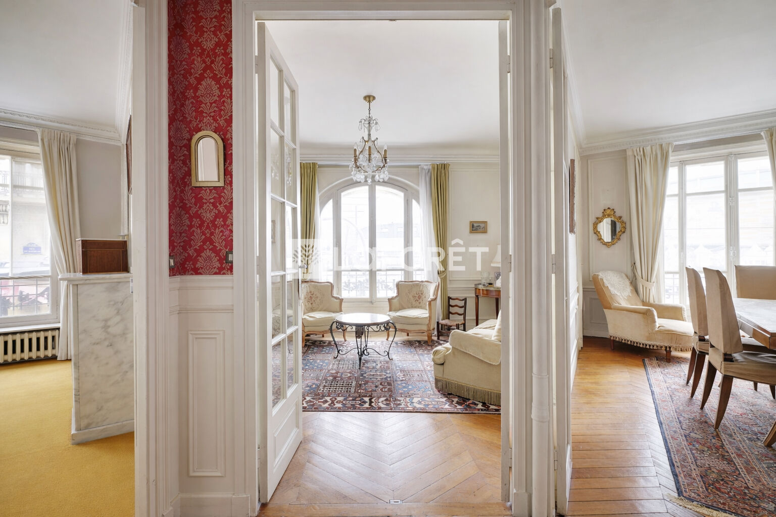 L'appartement se compose de 4 pièces, d'une cuisine indépendante ainsi que d'une salle de bains. Les hauteurs sous plafond, les moulures et les éléments anciens soigneusement préservés confèrent à l'ensemble une élégance et une authenticité particulièrement recherchées.