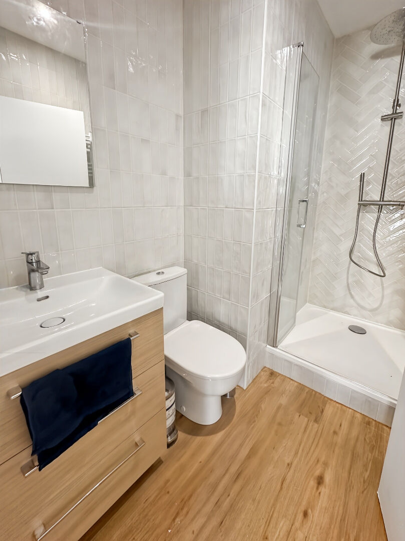 le deuxième au premier étage avec accès par la porte du rdc sur rue, un 4 pièces avec 3 chambres, un salle d'eau avec wc, une salle à manger avec cuisine ouverte.