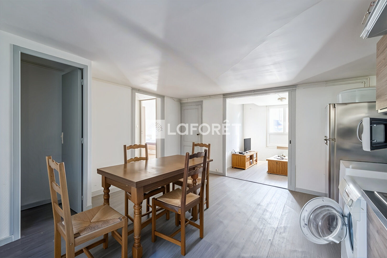 le deuxième au premier étage avec accès par la porte du rdc sur rue, un 4 pièces avec 3 chambres, un salle d'eau avec wc, une salle à manger avec cuisine ouverte.