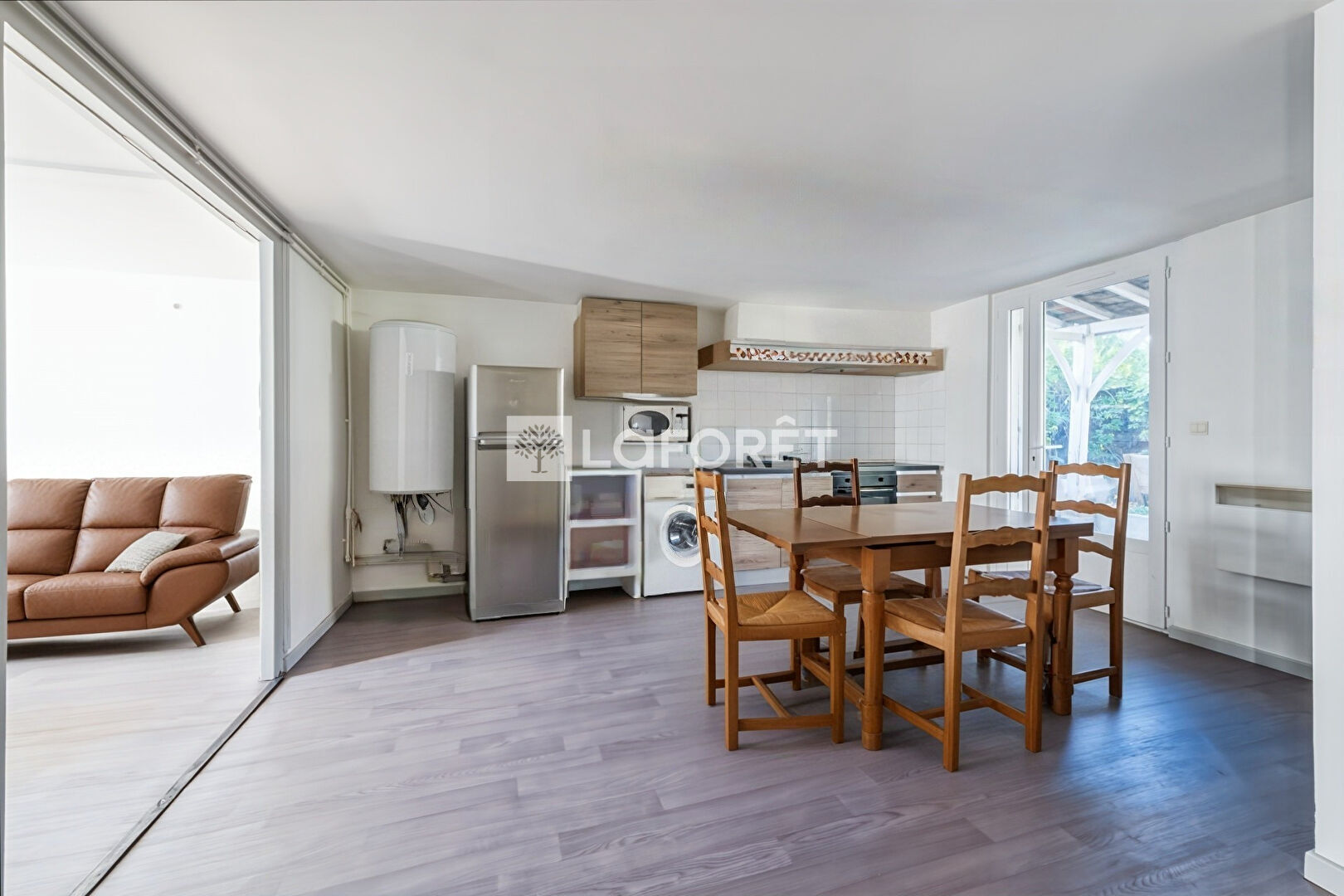 Le premier en rez-de-jardin avec accès par l'arrière de la maison actuellement en 4 pièces avec 2 chambres, possibilités 3, cuisine ouverte équipée sur le séjour, un salon, wc indépendant, salle d'eau, terrasse de 15m2 et jardin d'agrément de 32m2.